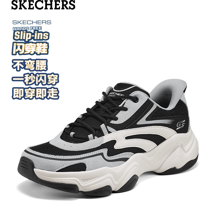 Skechers斯凯奇男鞋春夏季一脚蹬老爹鞋网面透气休闲运动鞋118335