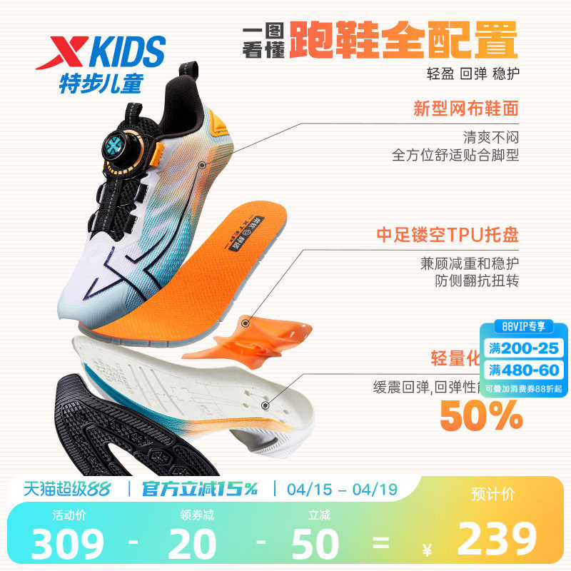 【氘风】特步儿童运动夏季男童跑步鞋小学生鞋子春秋款体测训练鞋