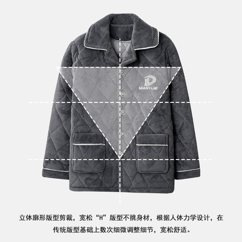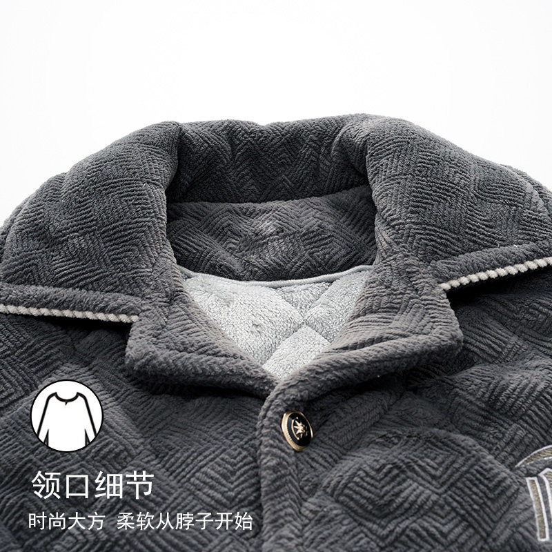 俞兆林男士冬季加绒加厚睡衣单件上衣男款爸爸三层夹棉珊瑚绒法兰