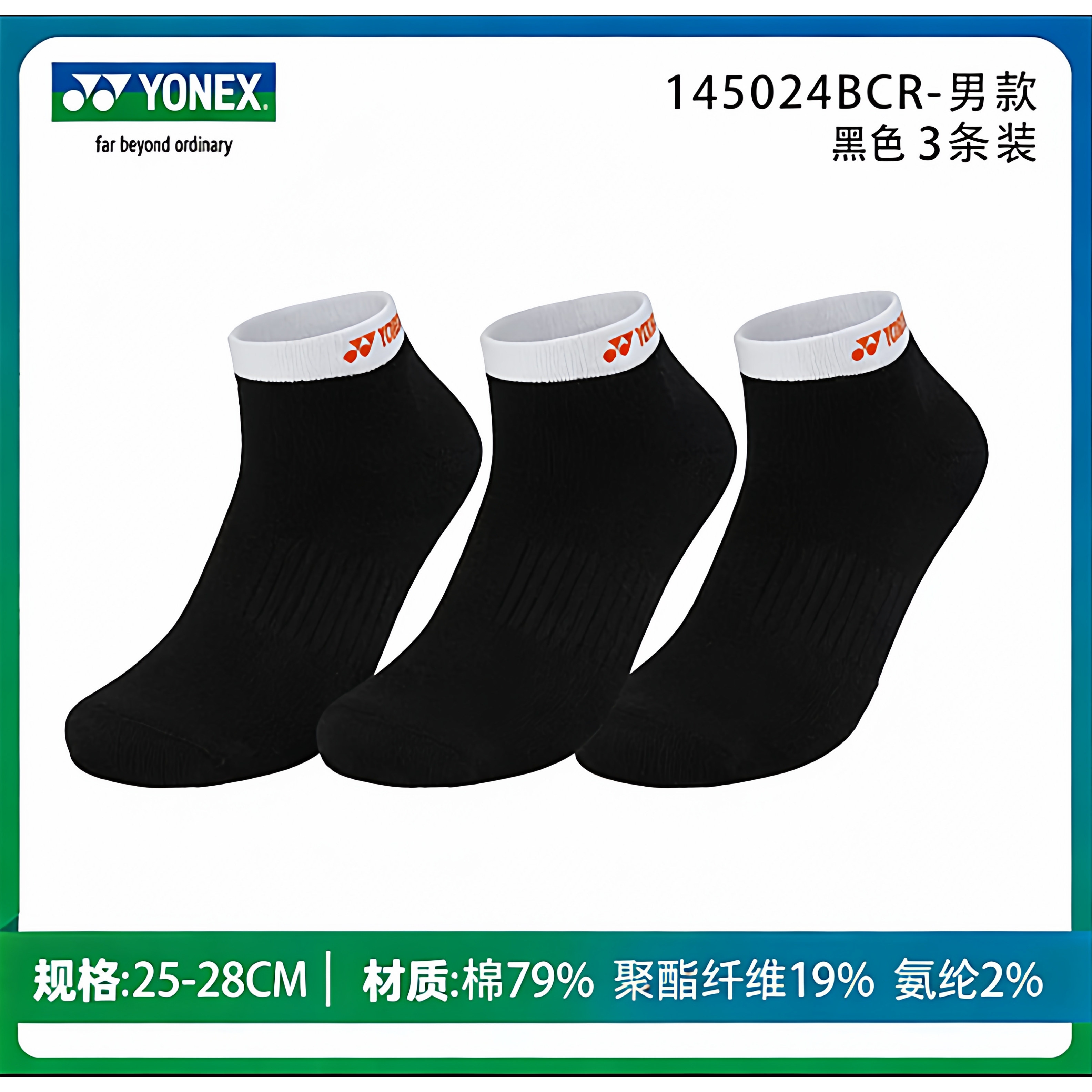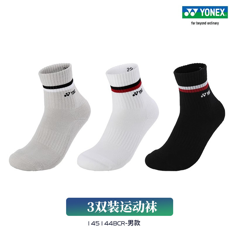 新款YONEX羽毛球袜男女运动加厚袜子三双装145134/145024/145144