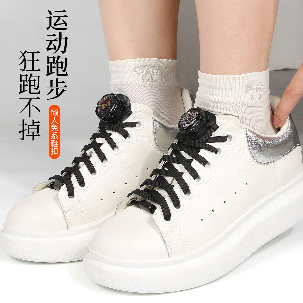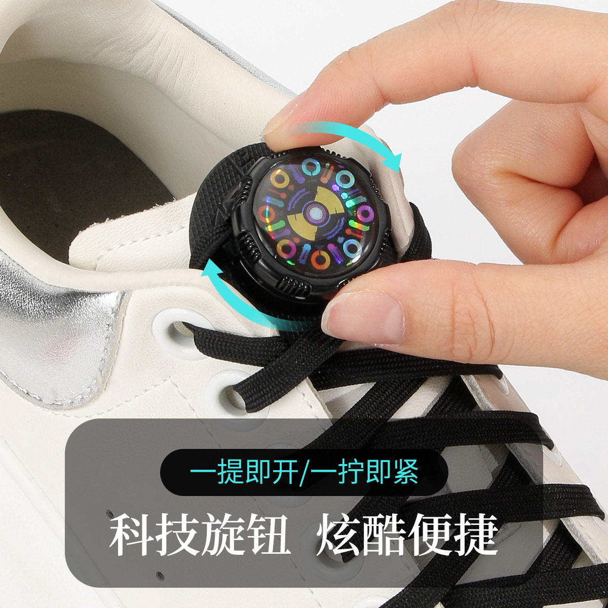旋钮鞋带第四代扁平粗鞋带黑白懒人免系免绑旋转鞋扣男女儿童运动