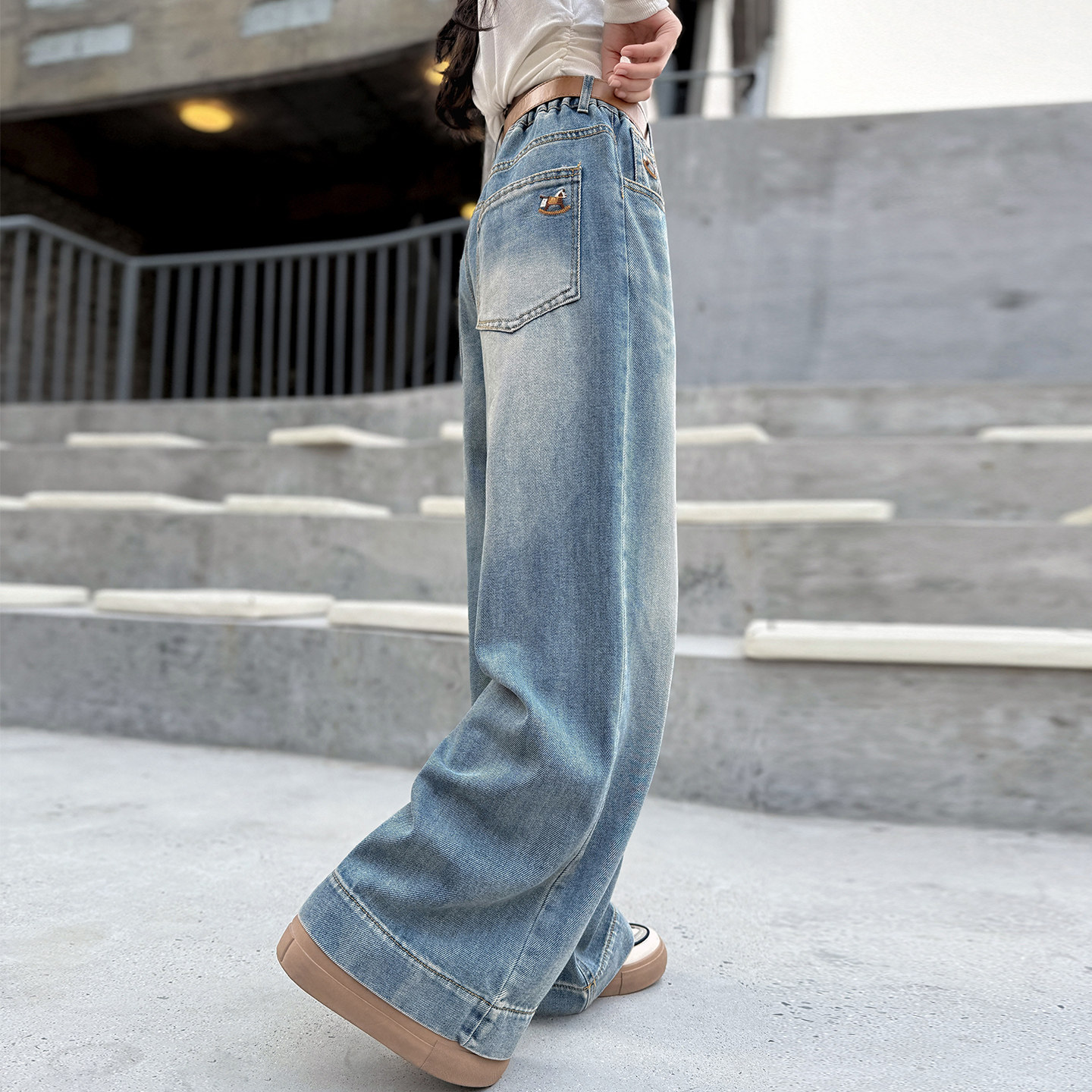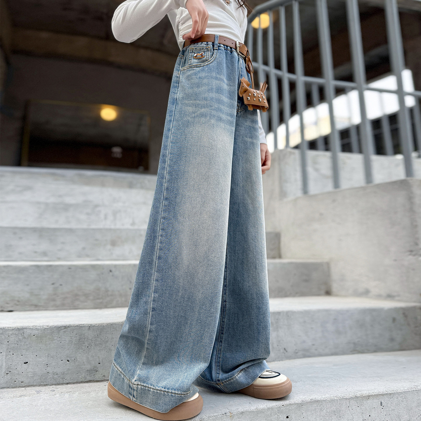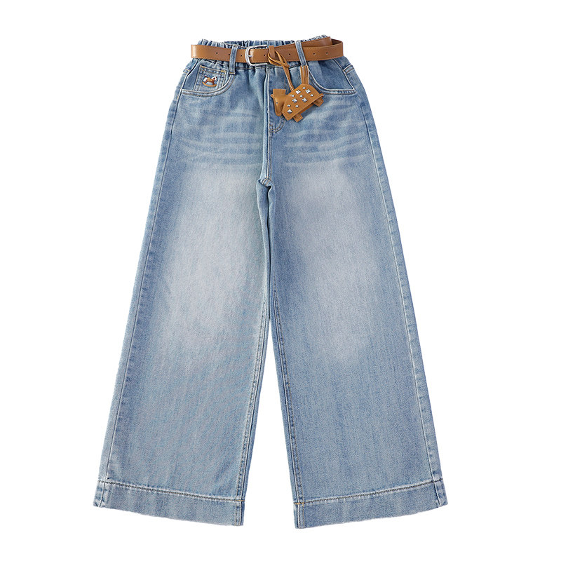 女童牛仔裤2026新款春装青少年儿童裤子女孩阔腿裤中大童马上有钱