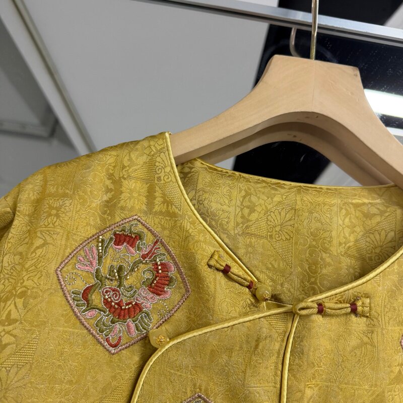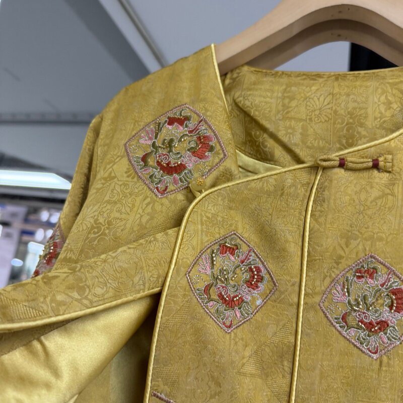 新中式女装外套2026年春装新款钉珠重工刺绣缎面提花面料国风洋气