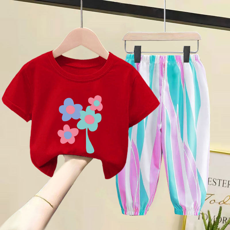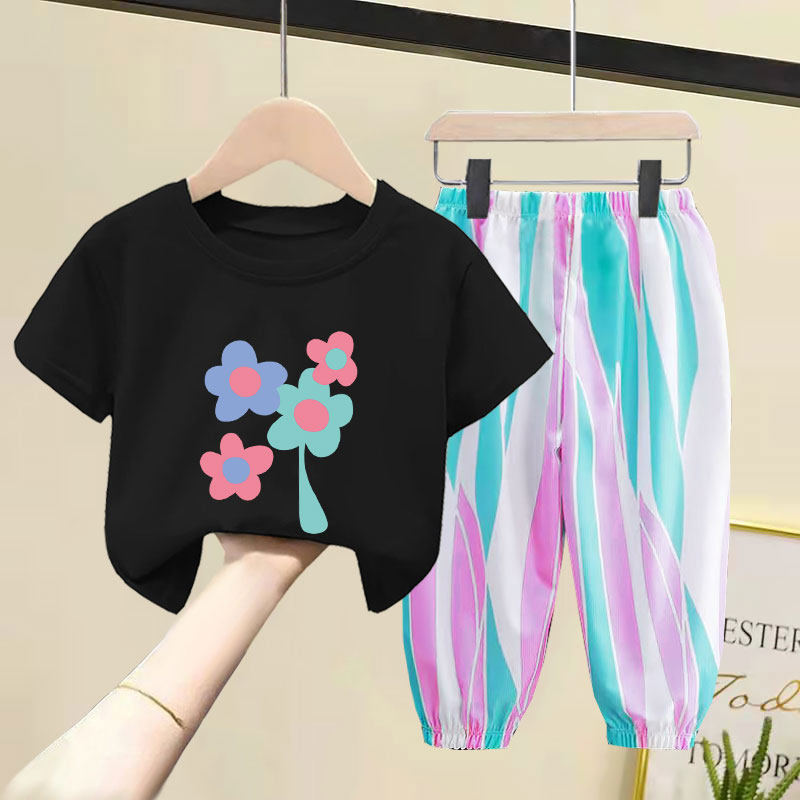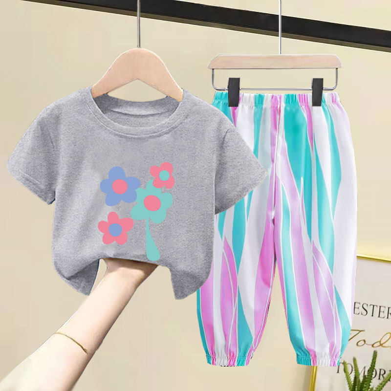 女童套装2025夏季装新款洋气韩版儿童薄款纯棉短袖T恤长裤两件套