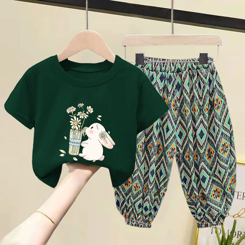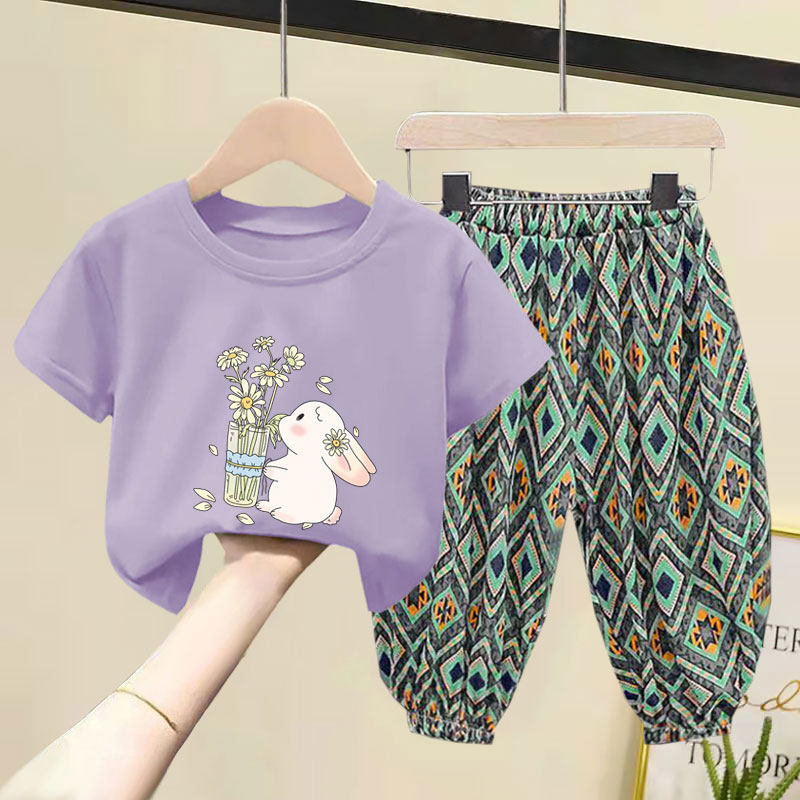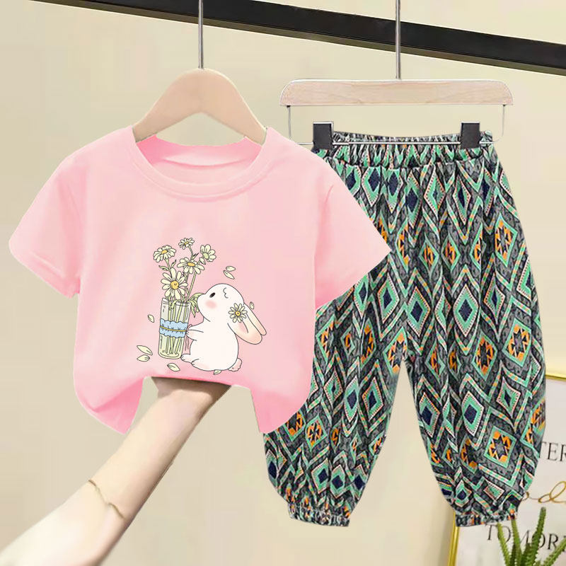 女童套装2025夏季装新款洋气韩版儿童短袖纯棉T恤防蚊长裤两件套