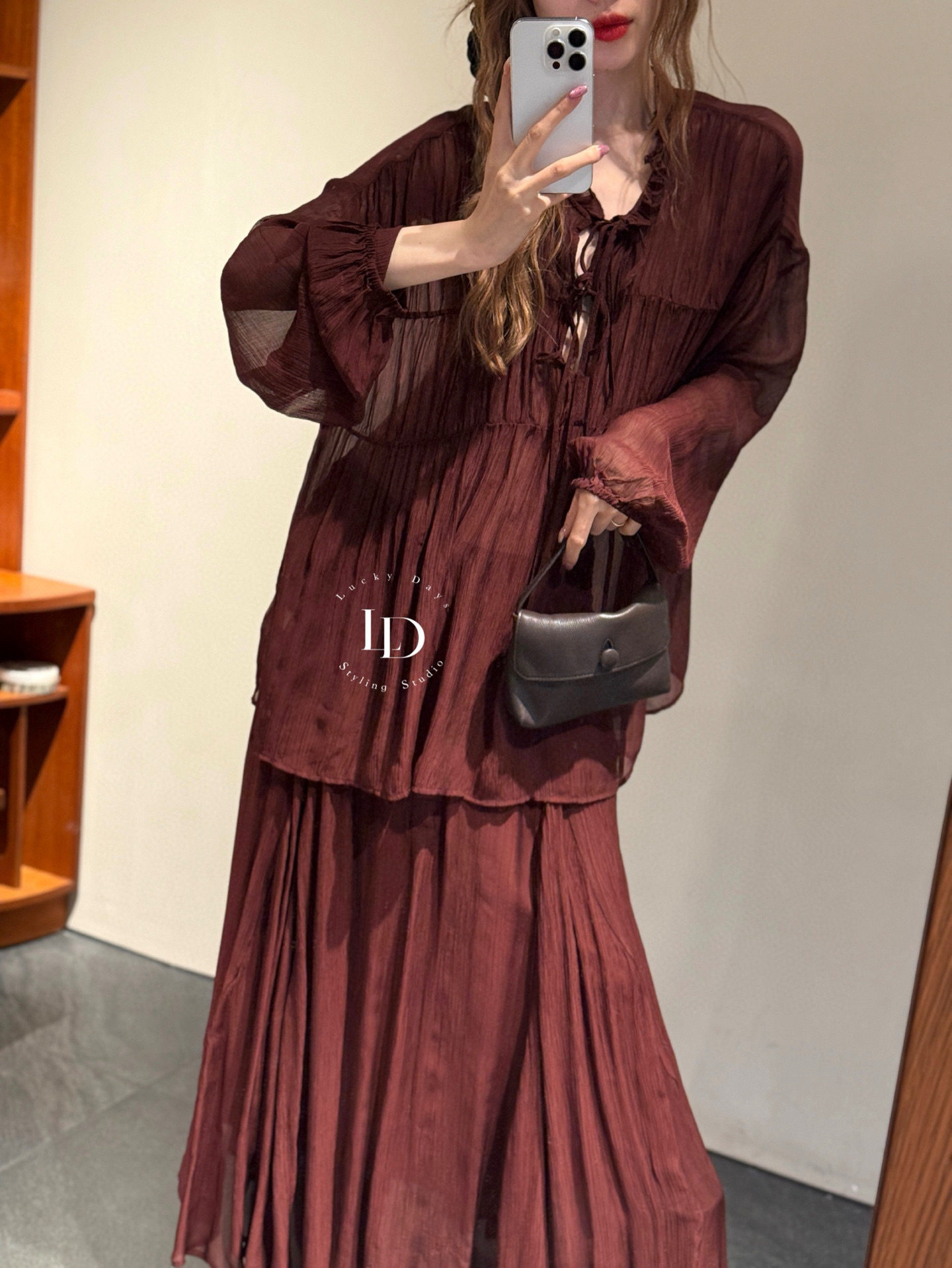 非实价高端定制2026早春新款洋气系带圆领长袖衬衫女韩版薄款上衣