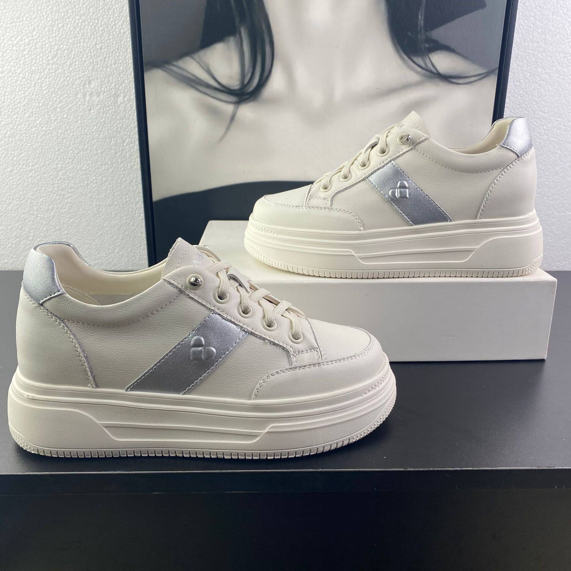 头层牛皮内增高一脚蹬小白鞋女2026春夏新款舒适轻便百搭休闲板鞋