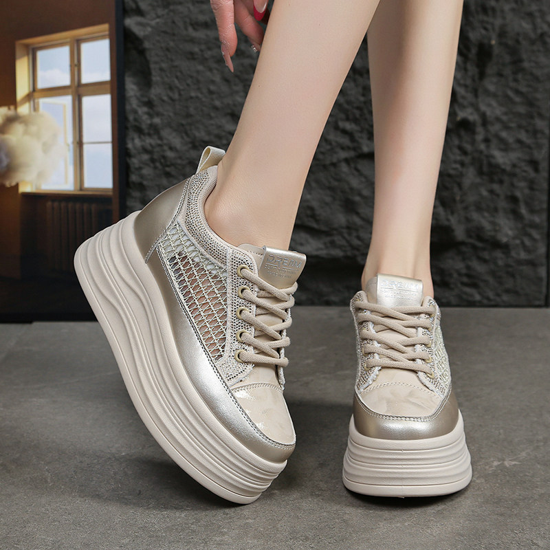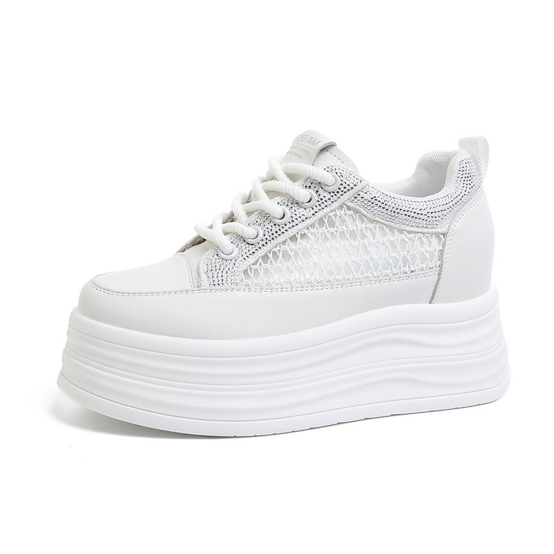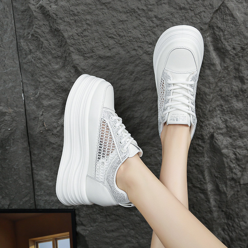 8cm内增高网面小白鞋女厚底2026春夏新款透气轻便松糕百搭休闲鞋