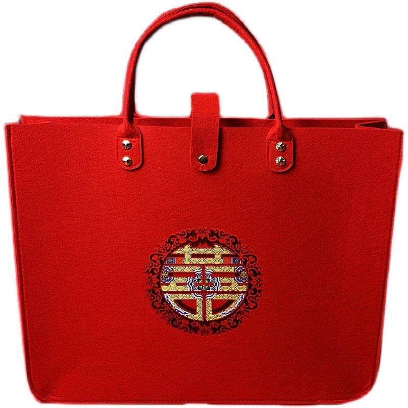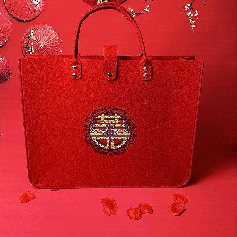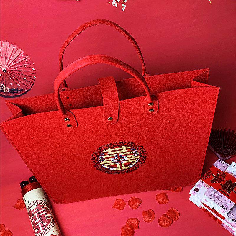 结婚四件套包装袋婚庆陪嫁喜被毛毯收纳袋结婚用品毛巾被子手提袋