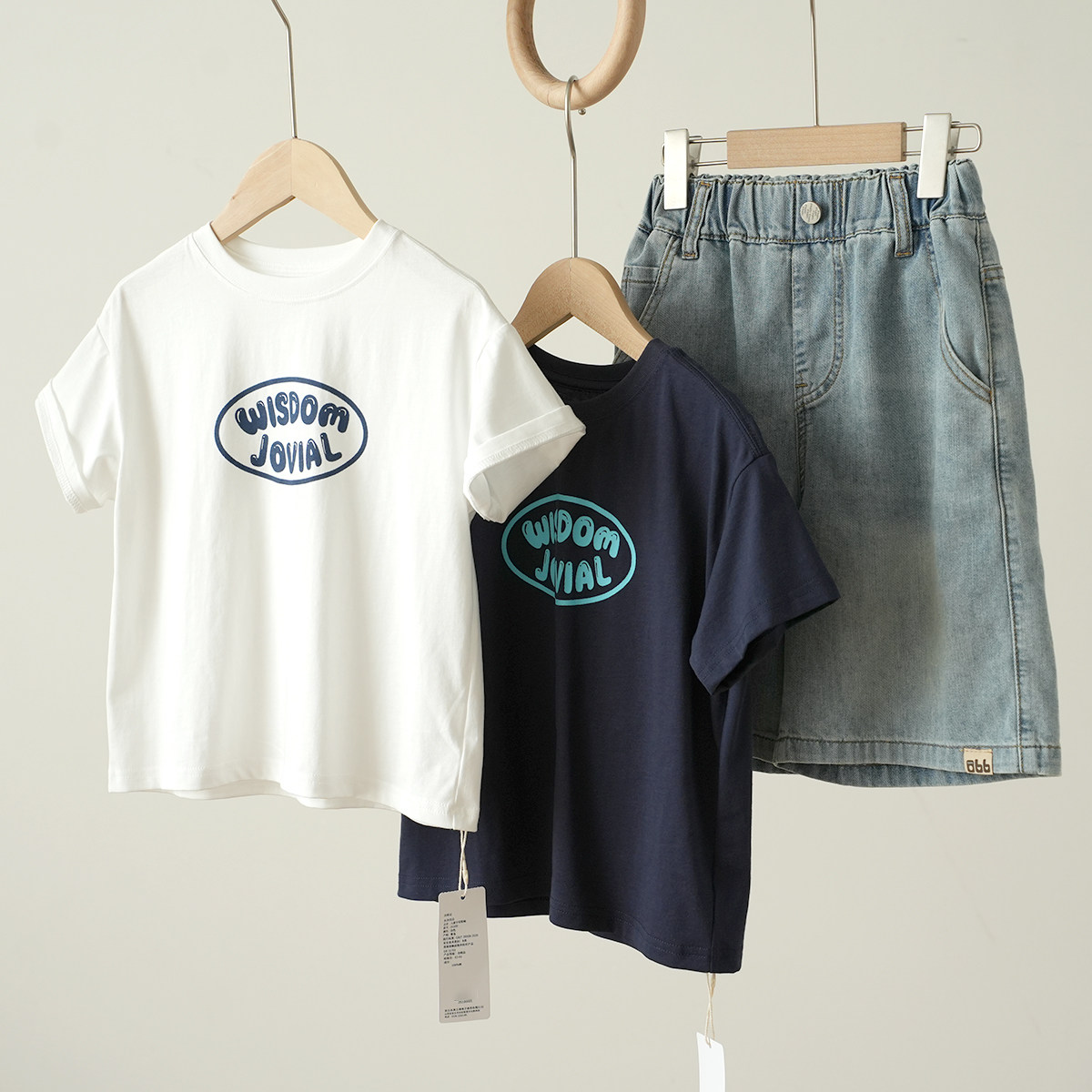 薄儿童短袖 男女童纯棉圆领T恤衫 全棉撞色上衣170中大童夏款童装