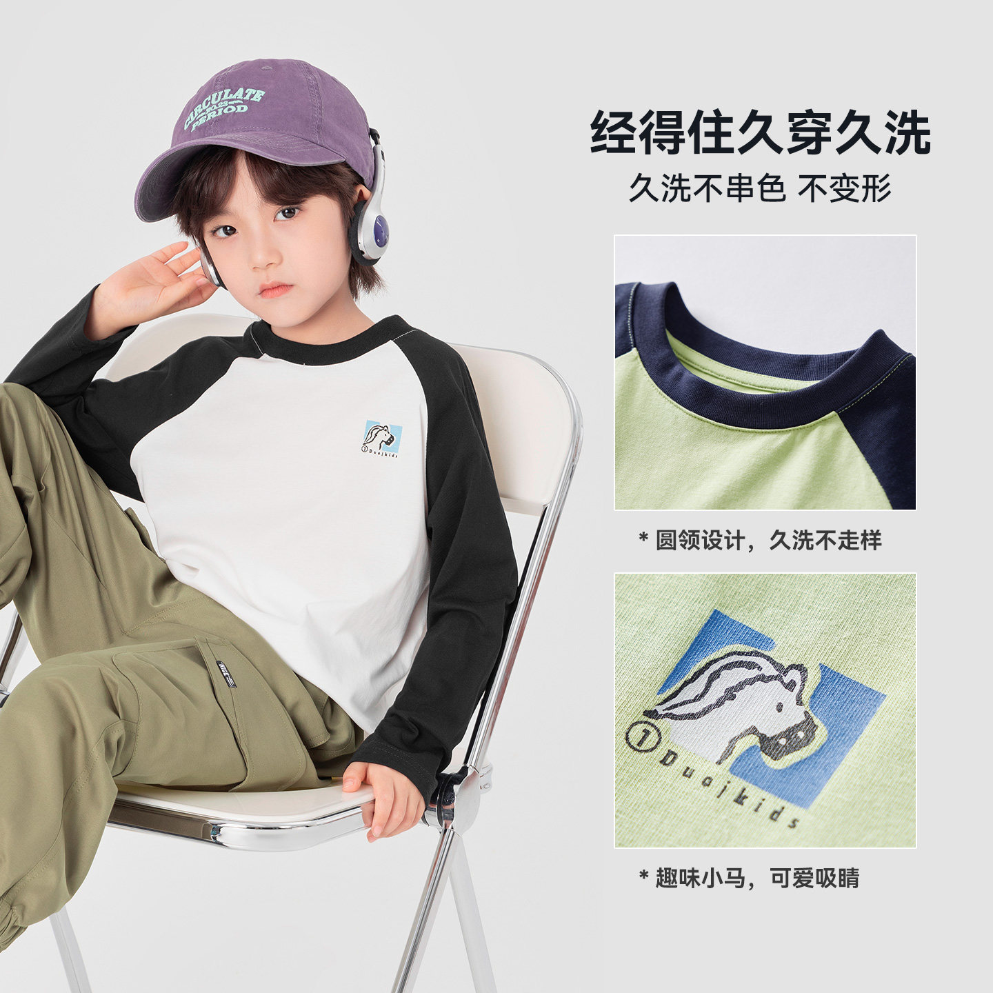 多多家男童长袖T恤纯棉2026新款春秋儿童中大童小马印花春装上衣
