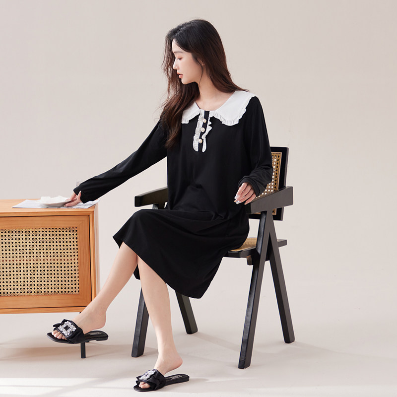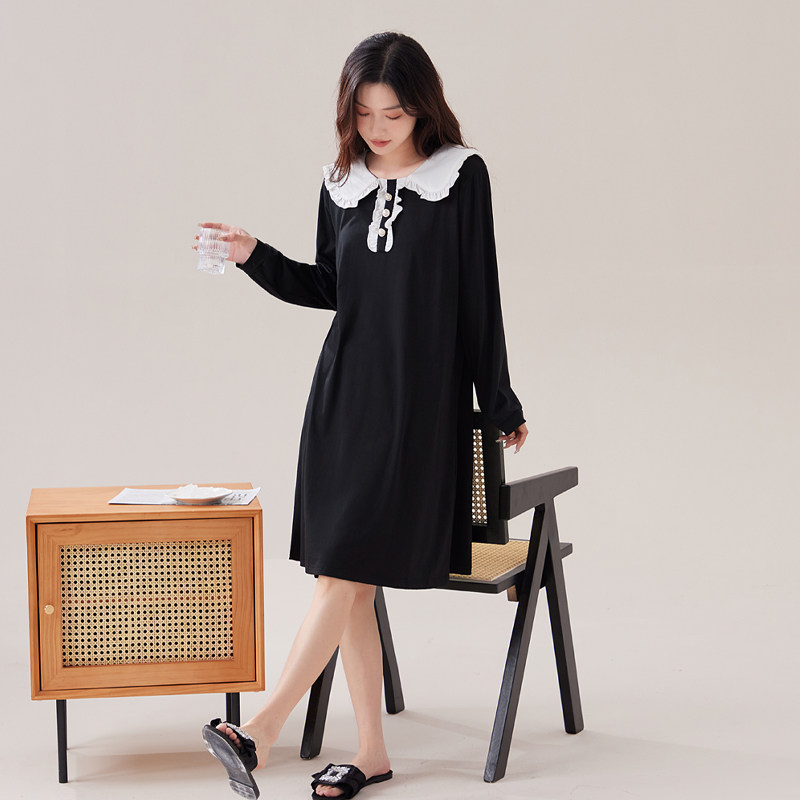 莫代尔睡裙女春秋季新款长袖睡衣休闲可外穿家居服大码夏天连衣裙