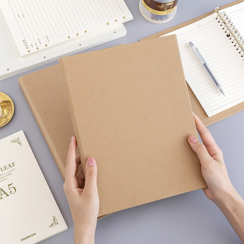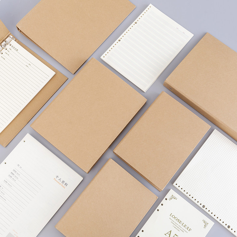 a4活页本空白可拆卸笔记本外壳b5简约复古30孔扣环a5活页文件夹牛皮纸封面活页记事本打孔活页夹配件单卖定制