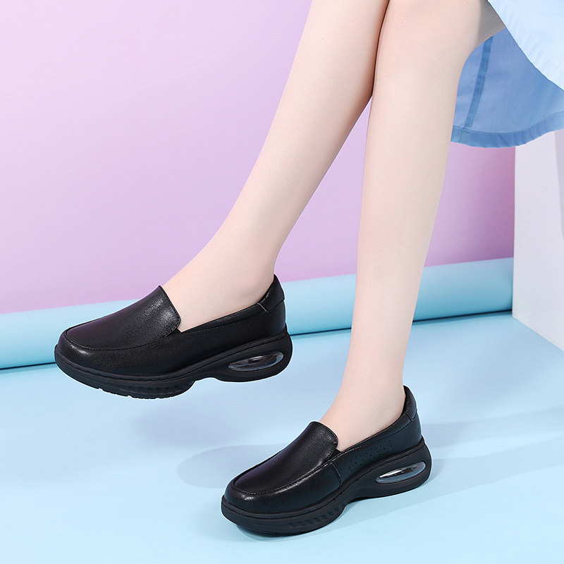 春秋护士鞋女软底透气防臭防滑工作鞋女黑色久站不累脚气垫医护鞋