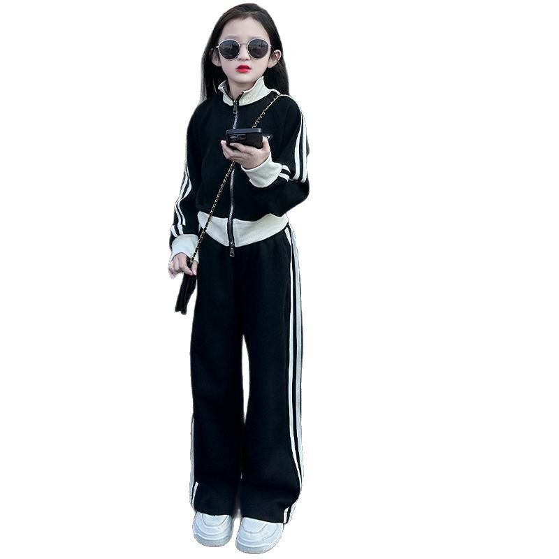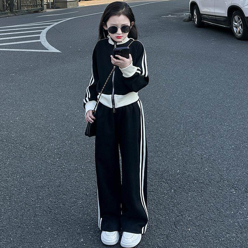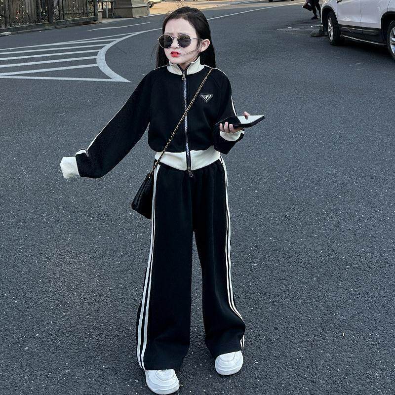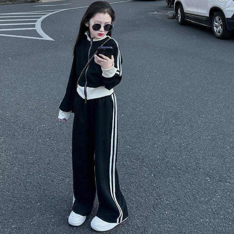 女童2026新款时尚儿童休闲大童春装运动套装开衫外套阔腿裤两件套