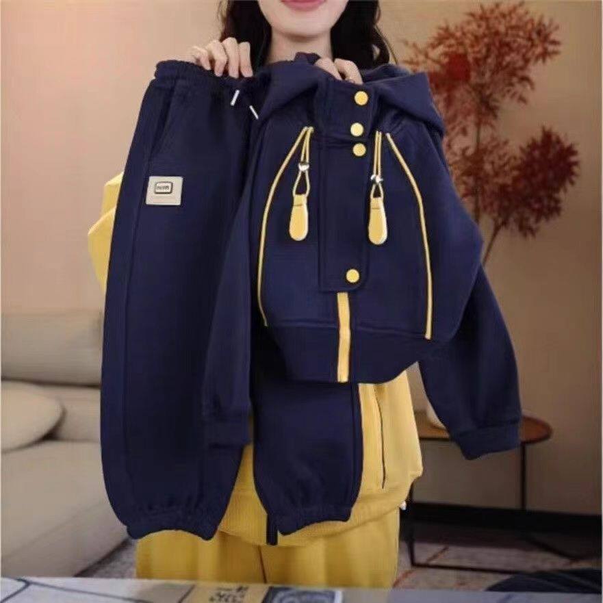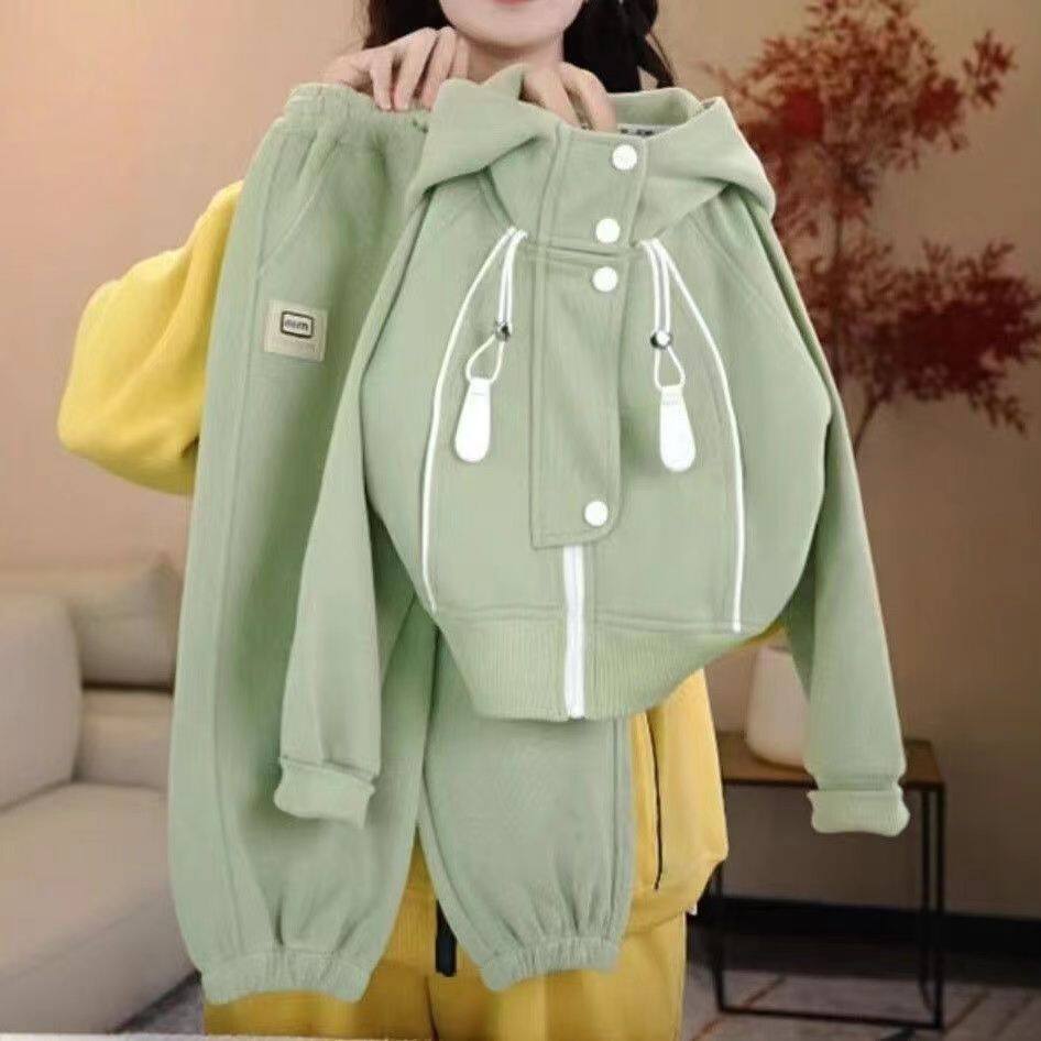 女童套装春秋季2026新款洋气运动休闲韩版时髦男女同款连帽两件套