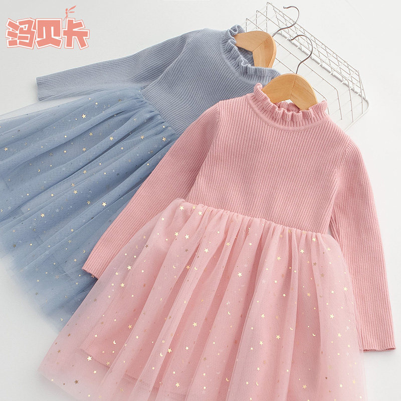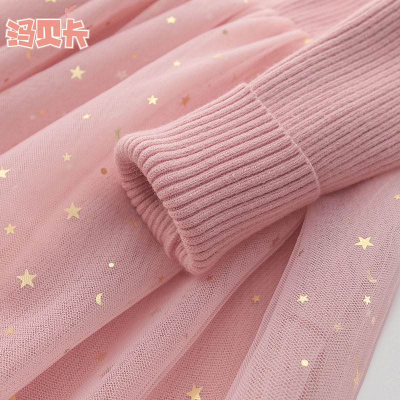 女童毛衣裙春秋新款连衣裙长袖中大童网纱裙儿童女宝宝针织公主裙