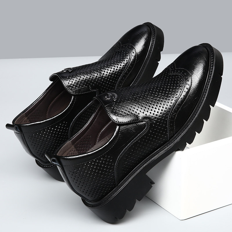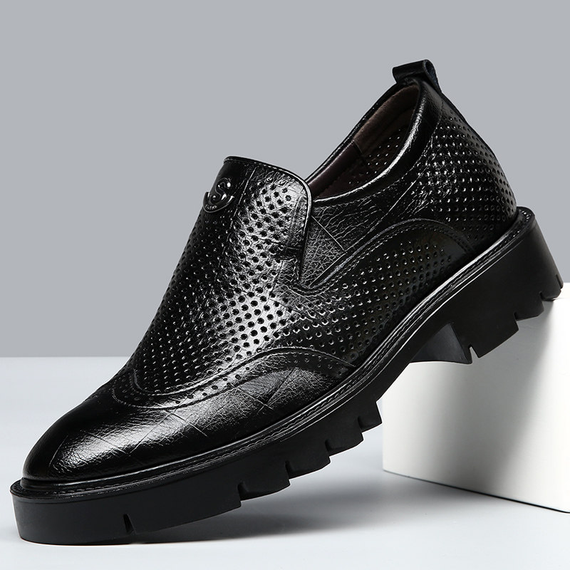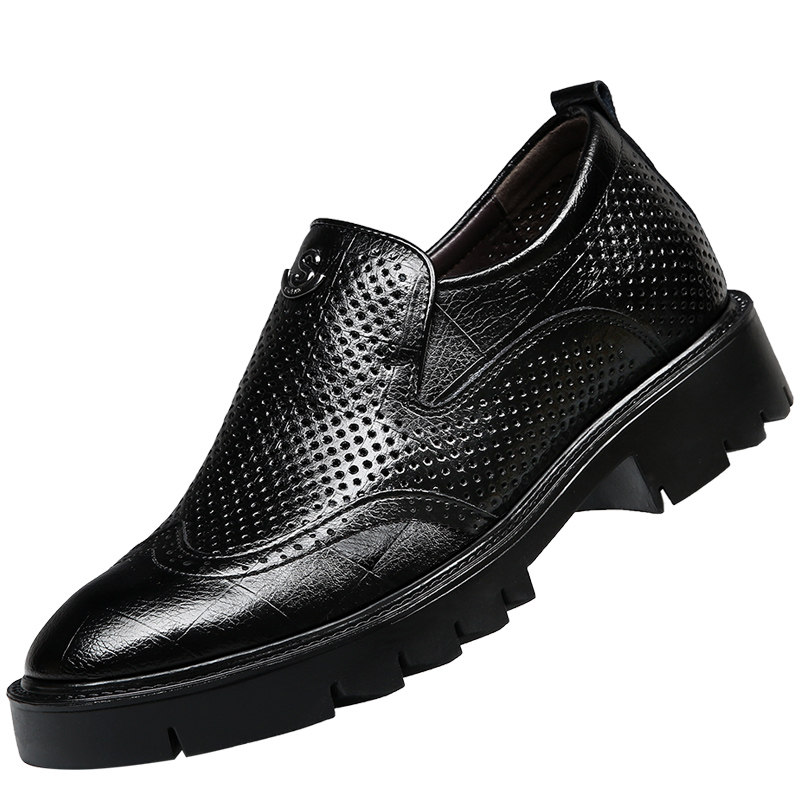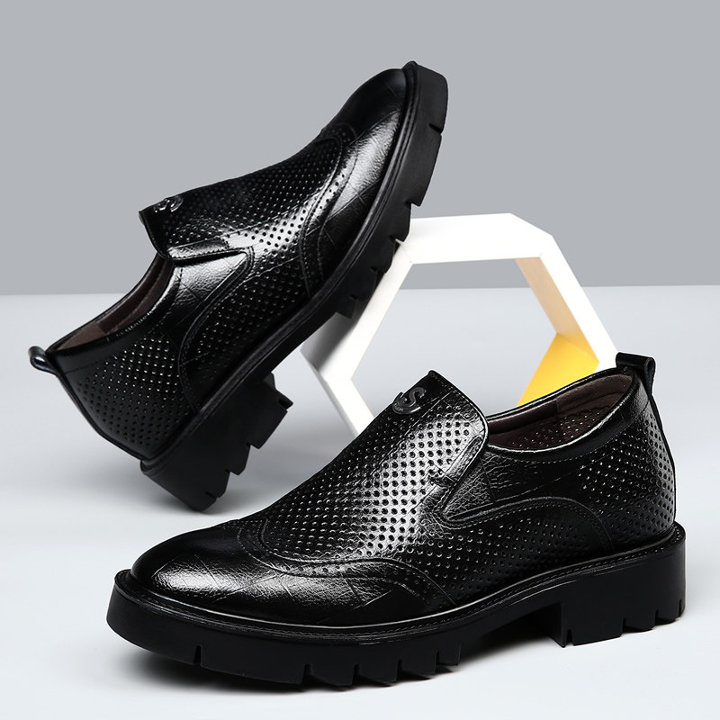 内增高鞋男10cm8cm夏季透气英伦商务正装皮鞋镂空厚底凉鞋洞洞鞋