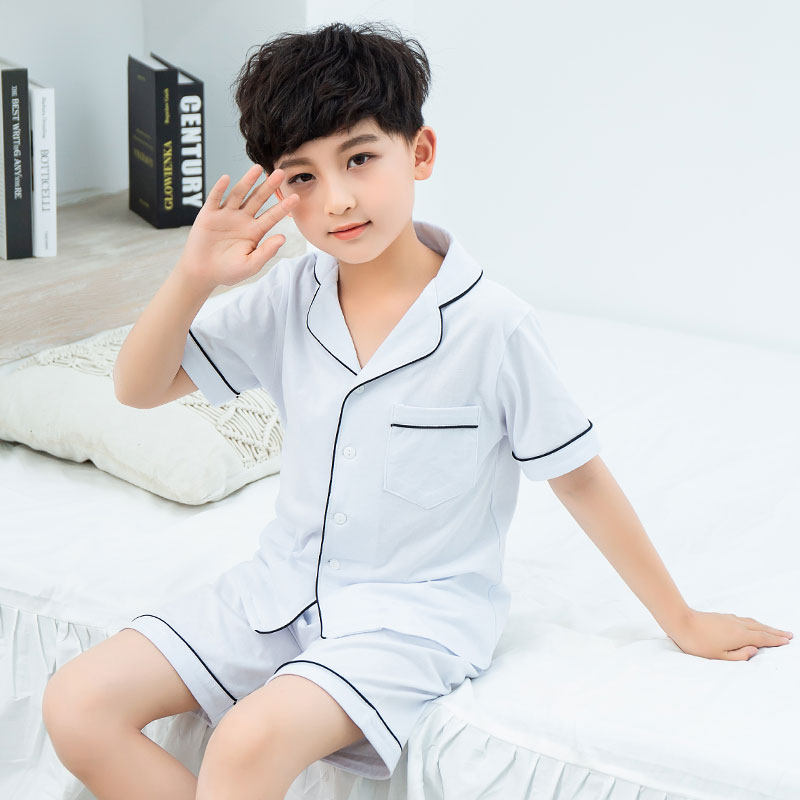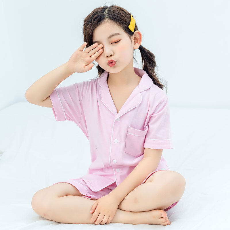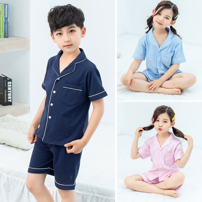 男童睡衣夏季薄款纯棉短袖短裤儿童家居服套装开衫女童睡衣亲子装