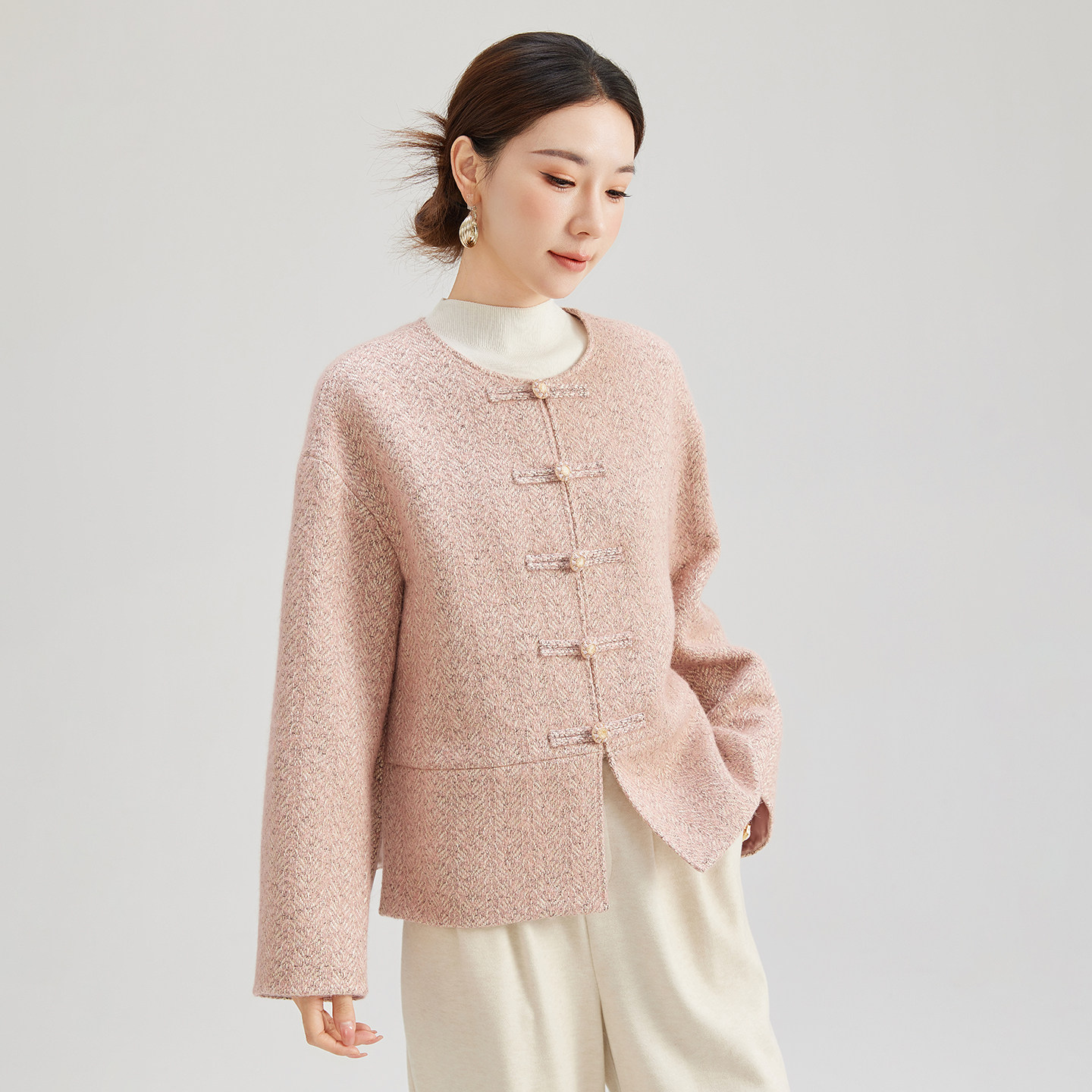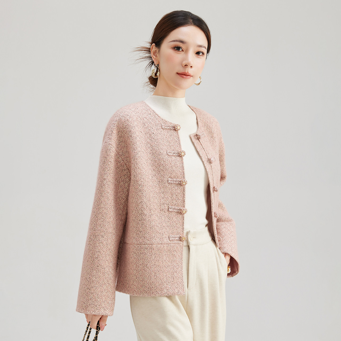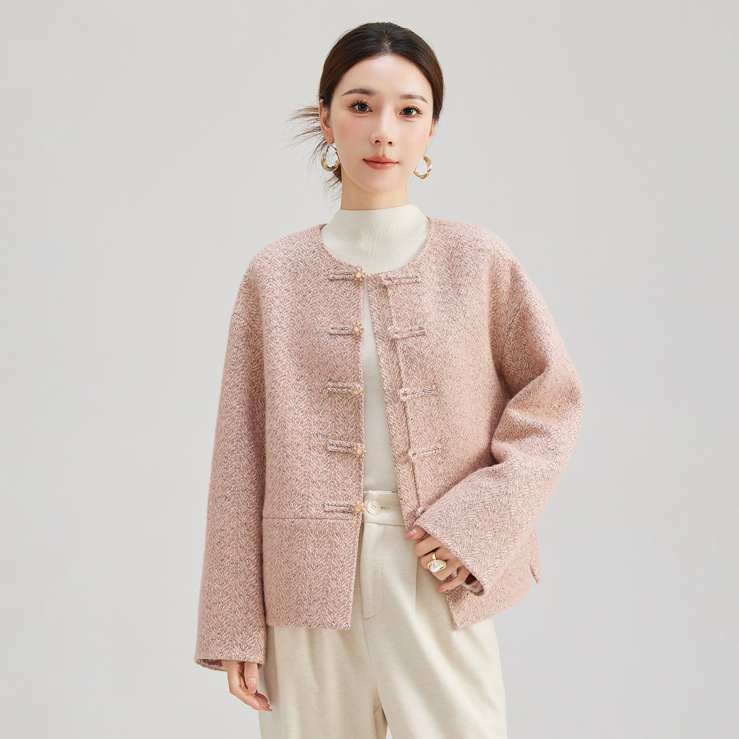 水墨佳人2026年春季新款女新中式小个子国风小香风短外套毛呢上衣