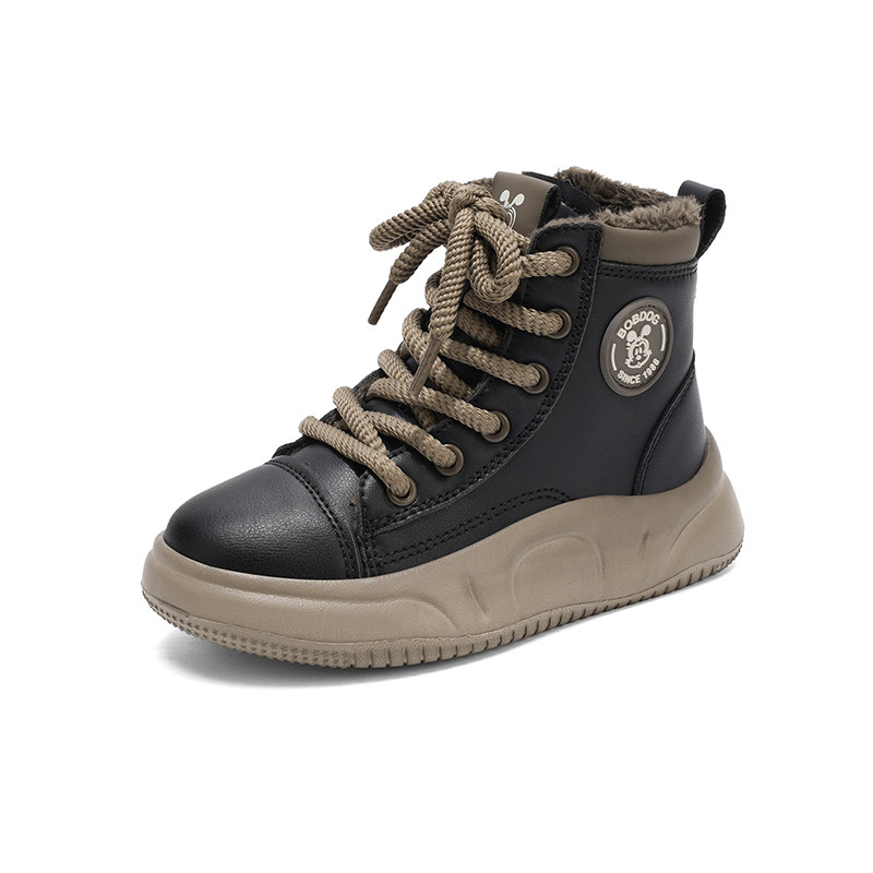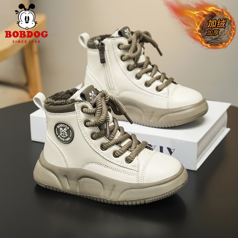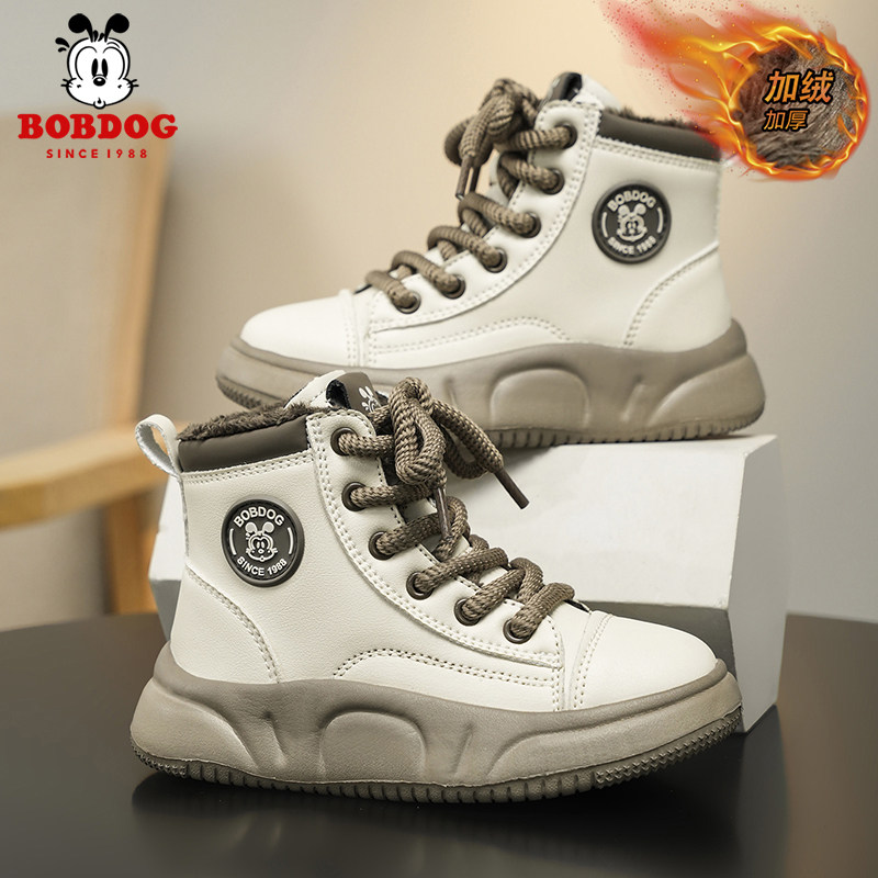 巴布豆马丁靴男童鞋冬季新款英伦加绒保暖短靴二棉小女孩儿童鞋子