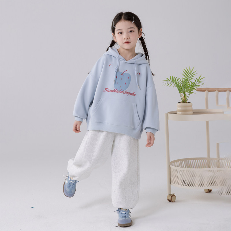 哈依鲁2026春秋季新款女童连帽卫衣儿童中大童宽松时尚卡通帽衫