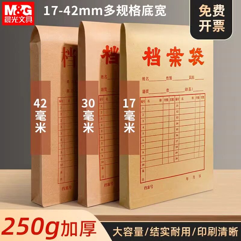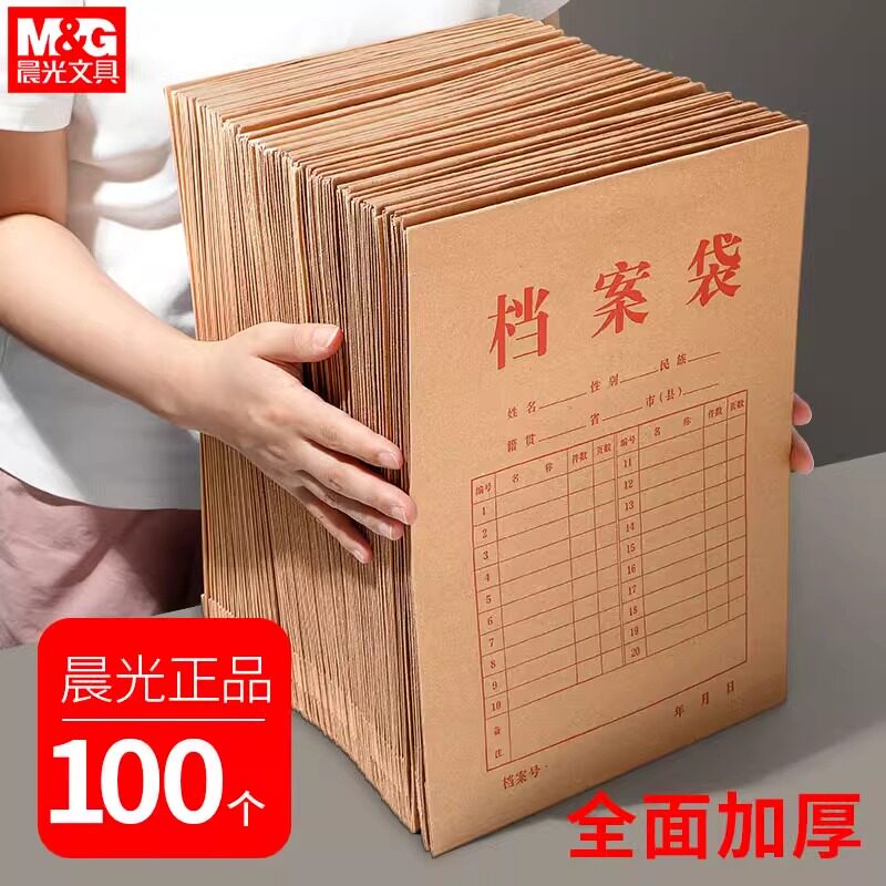 100个晨光牛皮纸档案袋A4纸质文件袋合同袋文档文件收纳40mm背宽不易变形加厚投标合同资料批发大容量办公