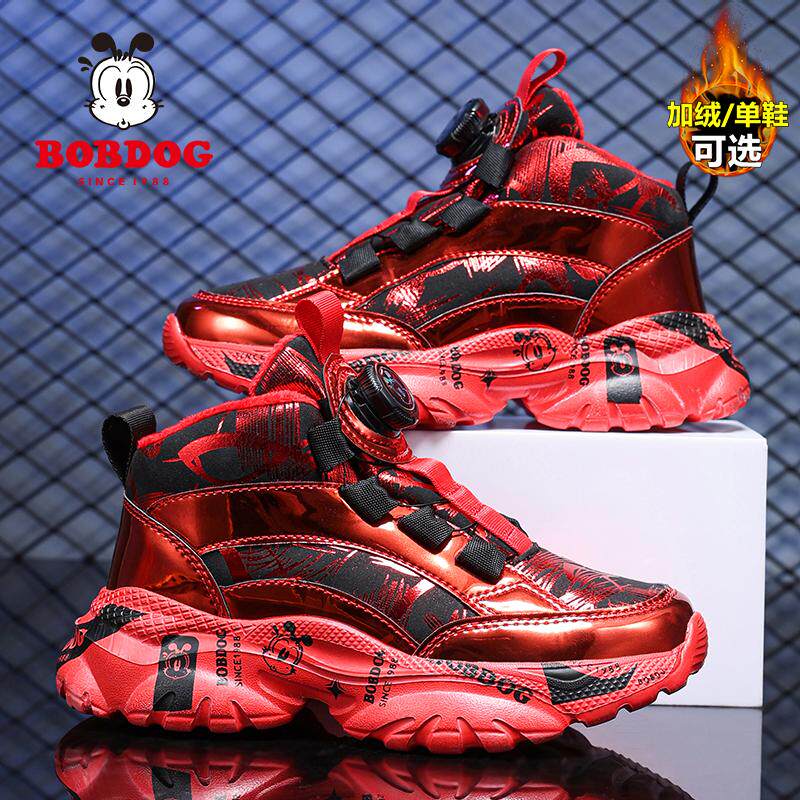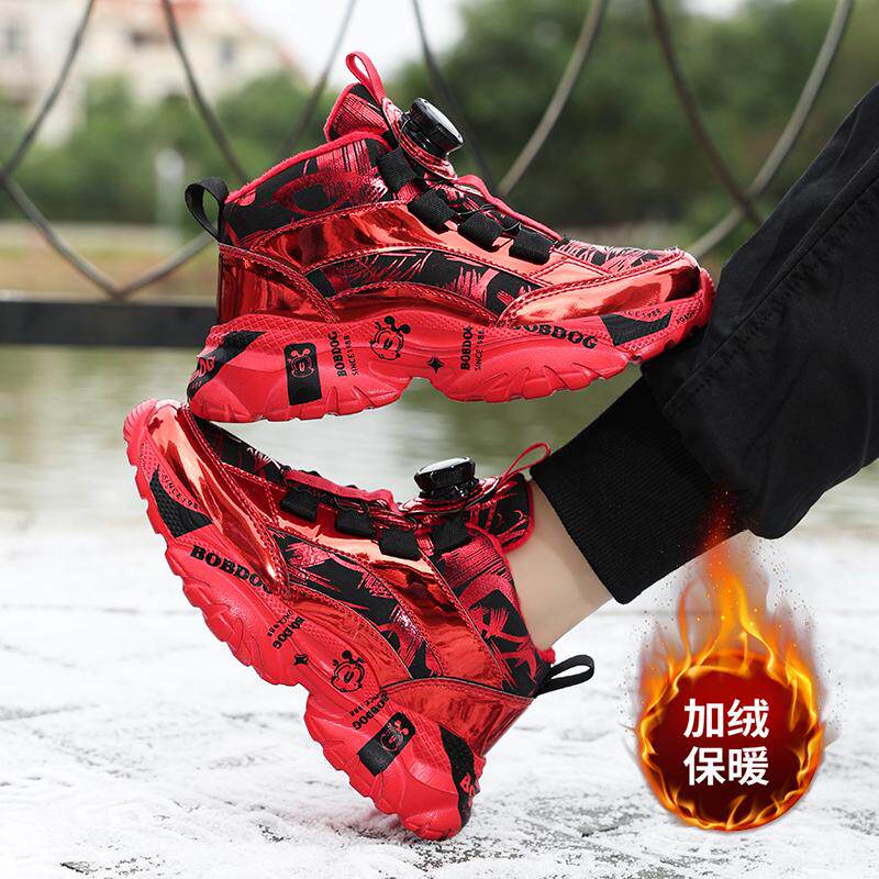巴布豆2025蛇年本命年红色鞋子女童安可拉红儿童运动鞋男童加绒鞋