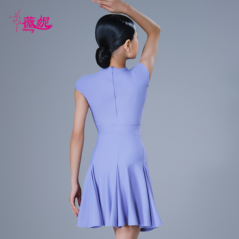 薇妮拉丁舞规定服包肩袖夏季短袖无鱼骨体协专用考级比赛演出舞服