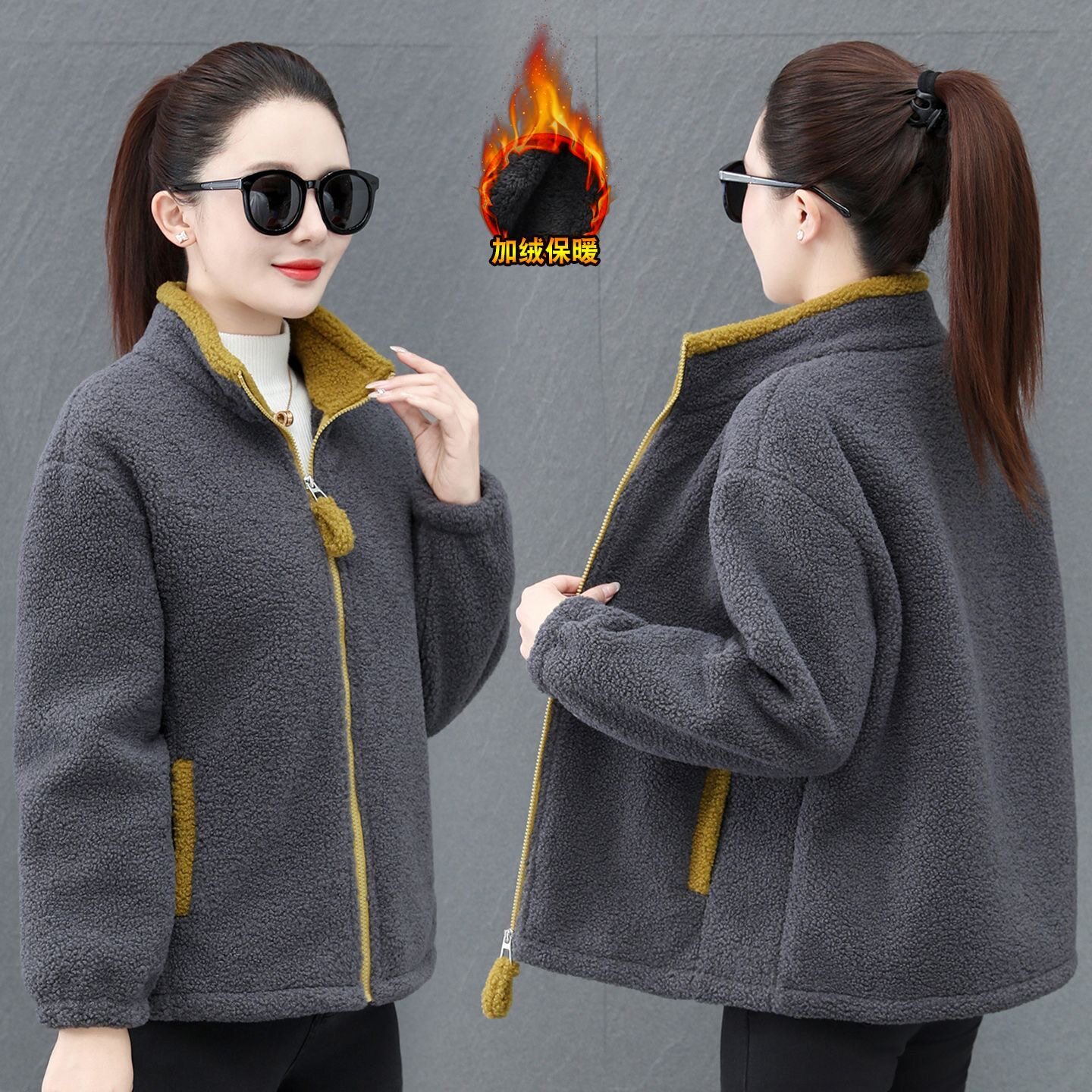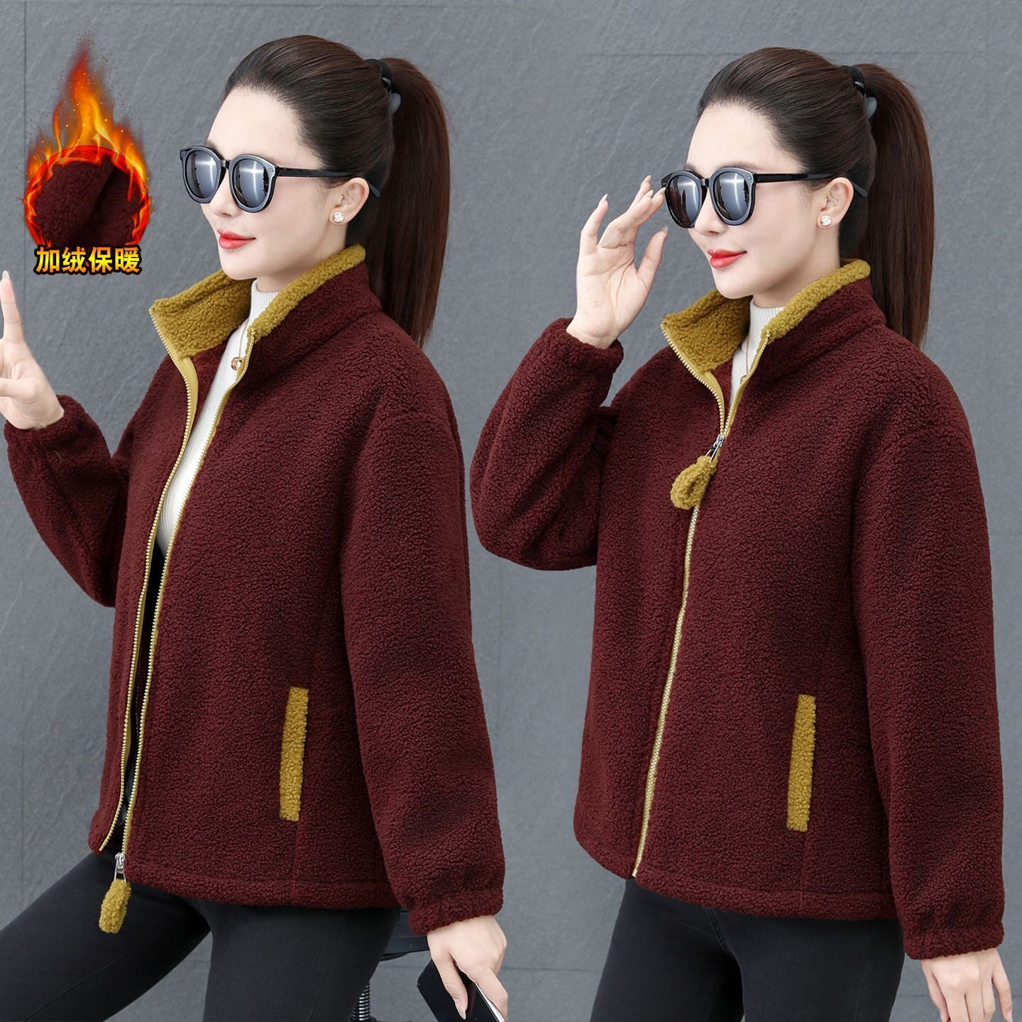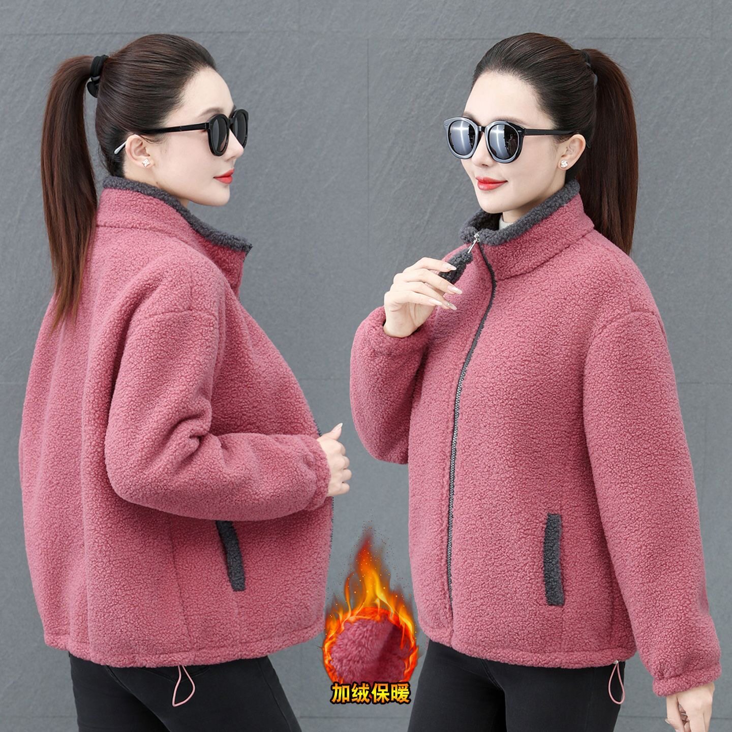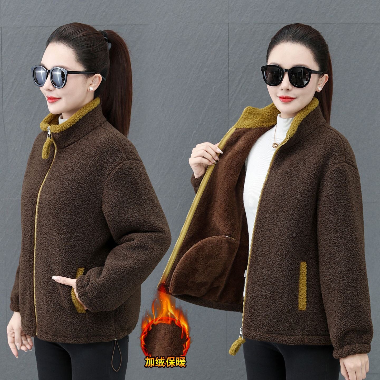 时尚妈妈冬加绒加厚颗粒绒棉衣中老年女装拉链休闲保暖羊羔绒外套
