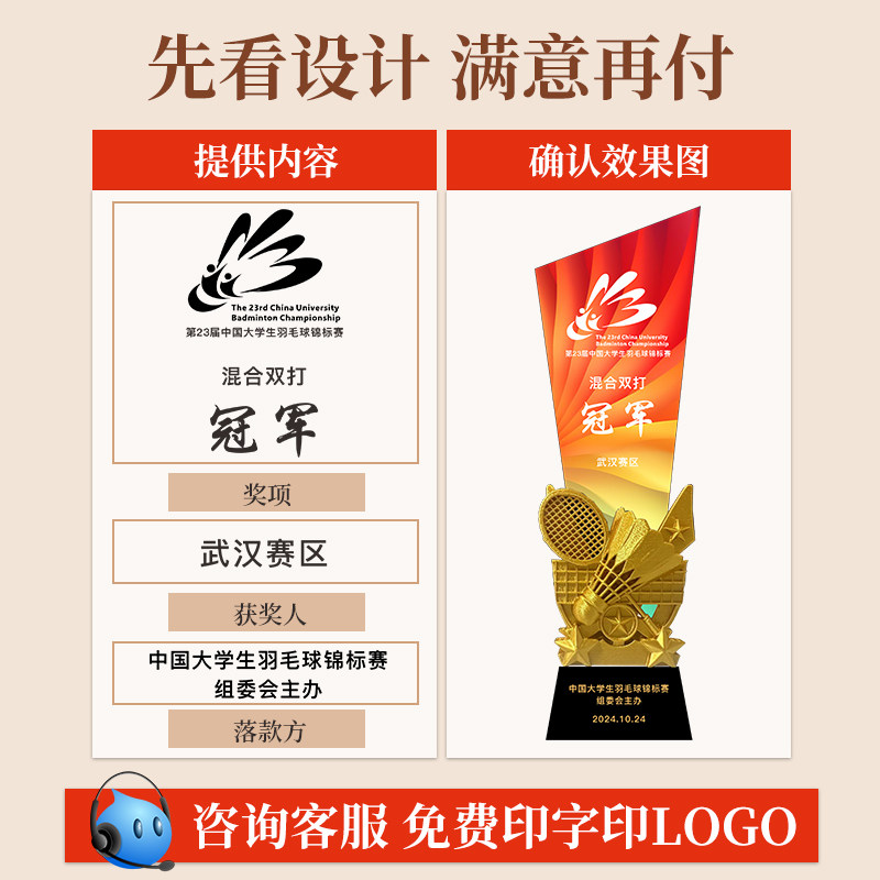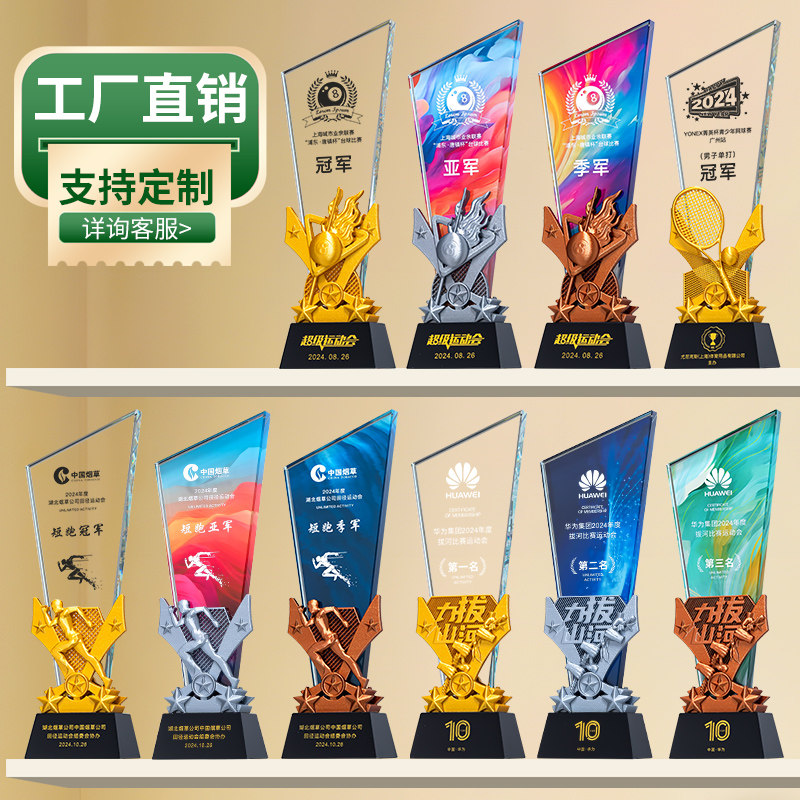 体育运动会比赛金银铜水晶奖杯定制跑步篮球足球网球乒乓球台球拔河羽毛球比赛颁奖冠亚季军奖牌免费刻字定做