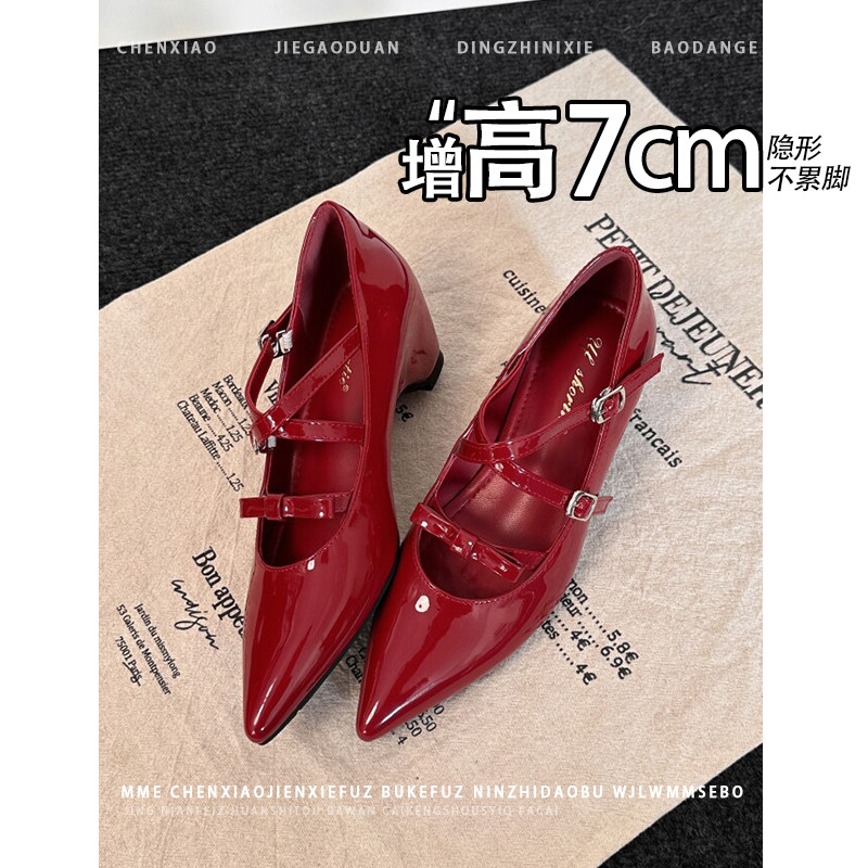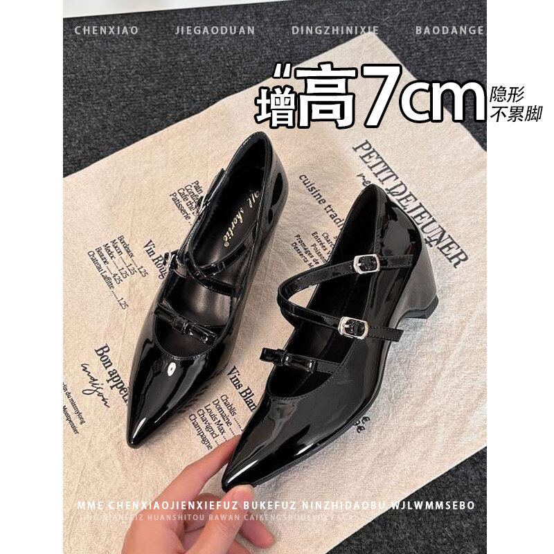 隐形内增高7CM!小个子尖头浅口单鞋2026早春新款一字扣带女鞋