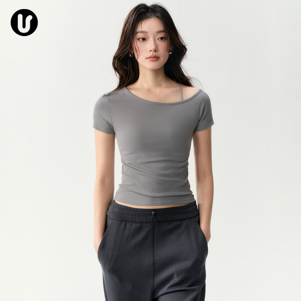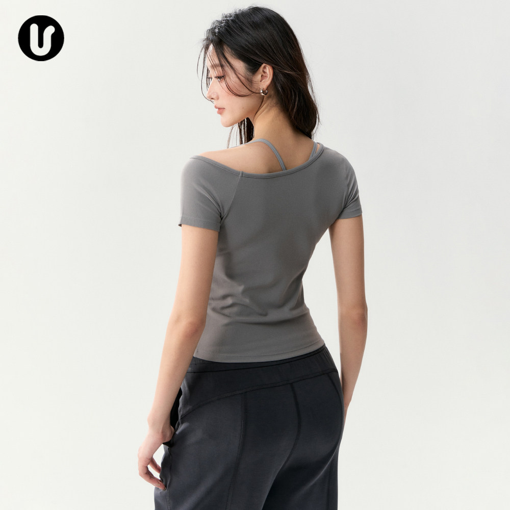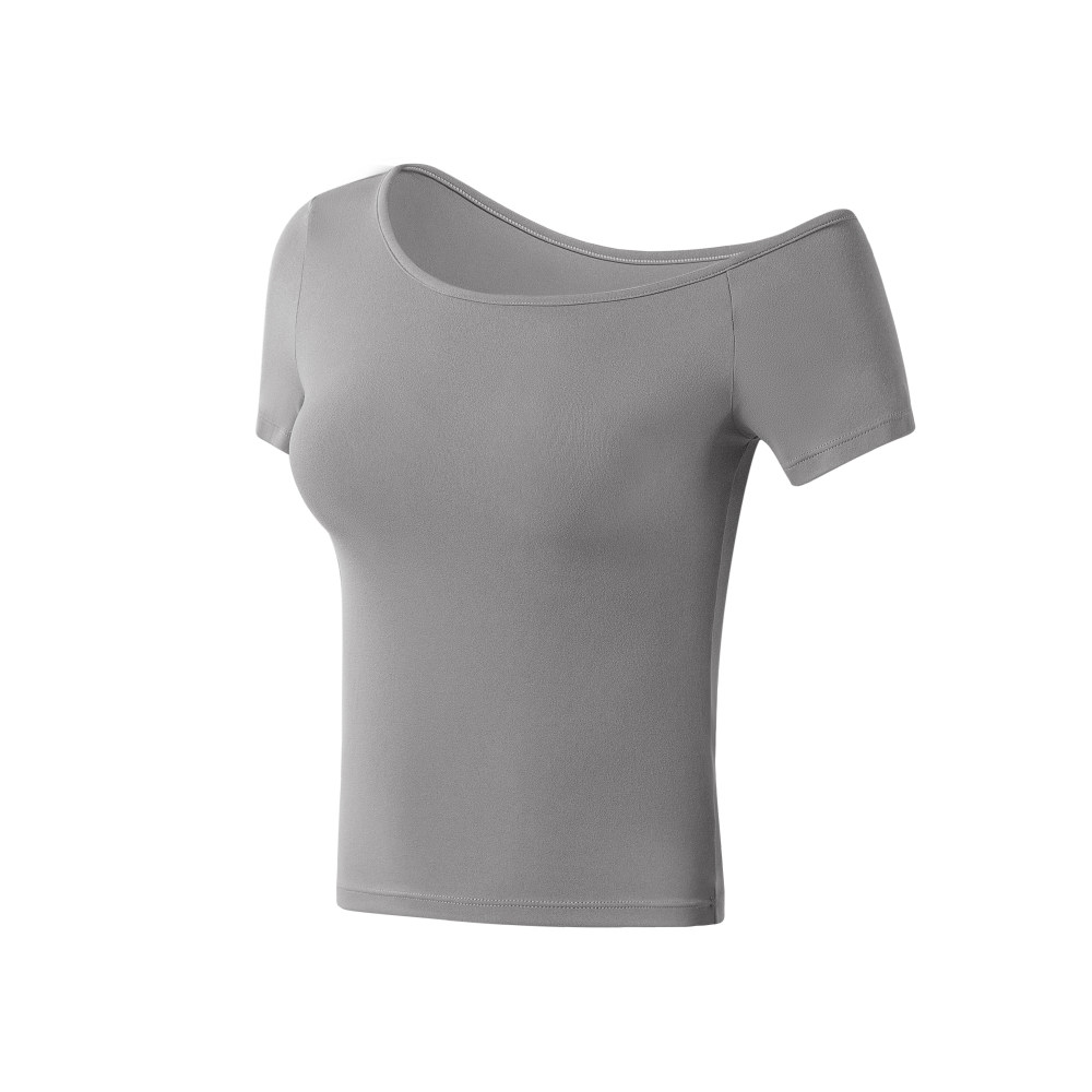 运动短袖女春夏新款修身斜肩瑜伽服T恤绝美普拉提训练服健身上衣