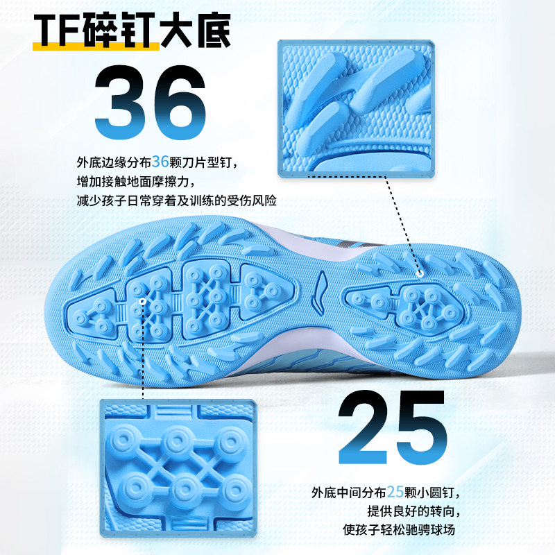 李宁儿童足球鞋男童女孩新款正品TF碎钉专业青少年小学生专用训练
