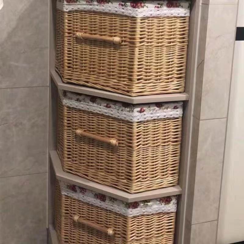 柳藤编三角形扇形收纳筐蓝杂w物箱柜子格子空间编织储物盒订制布
