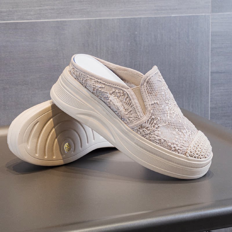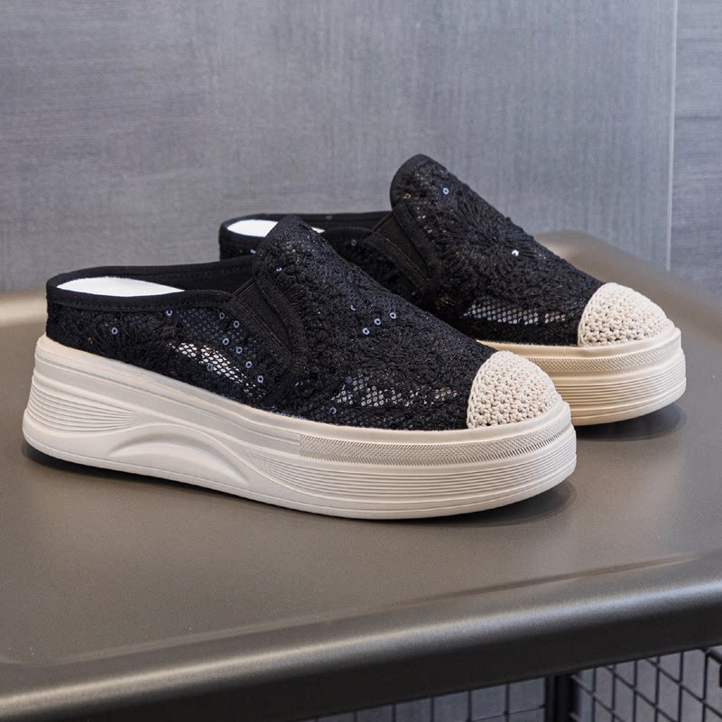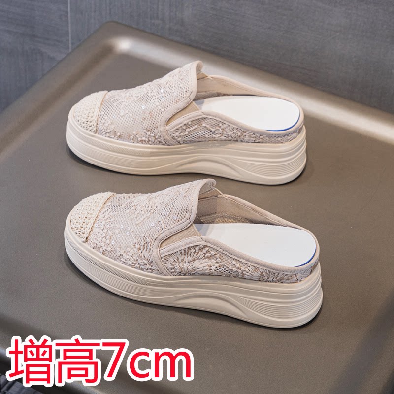 包头半拖鞋厚底内增高渔夫鞋夏季透气网面一脚蹬34小码女鞋32 33