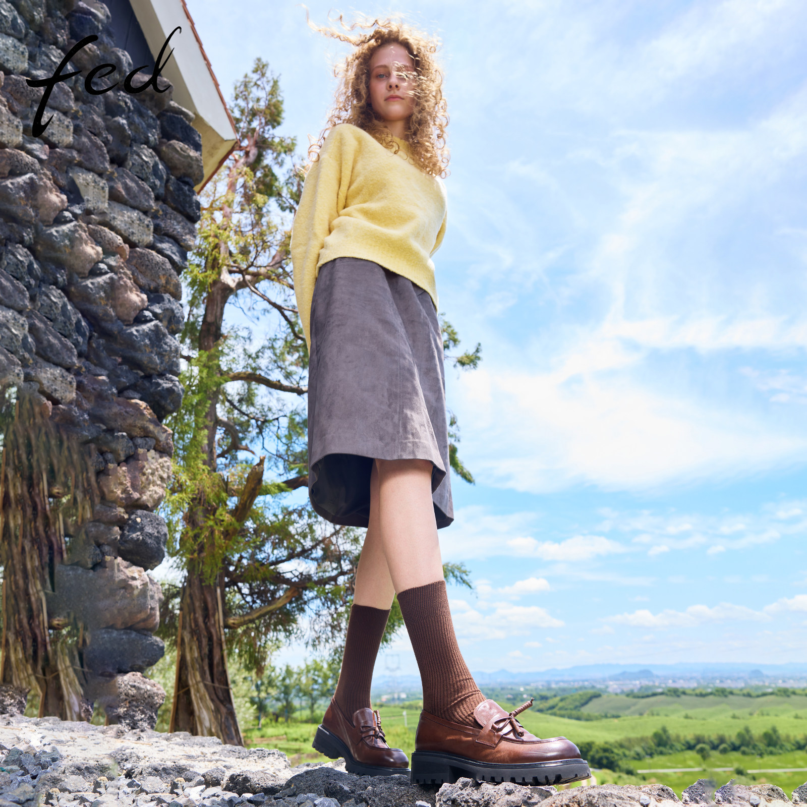 fed商城同款复古乐福鞋秋季新款女鞋厚底单鞋粗跟小皮鞋女FVG663