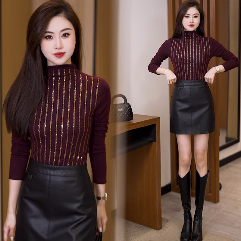 高级感可外穿安哥拉红上衣双面德绒加厚保暖半高领打底衫女内搭