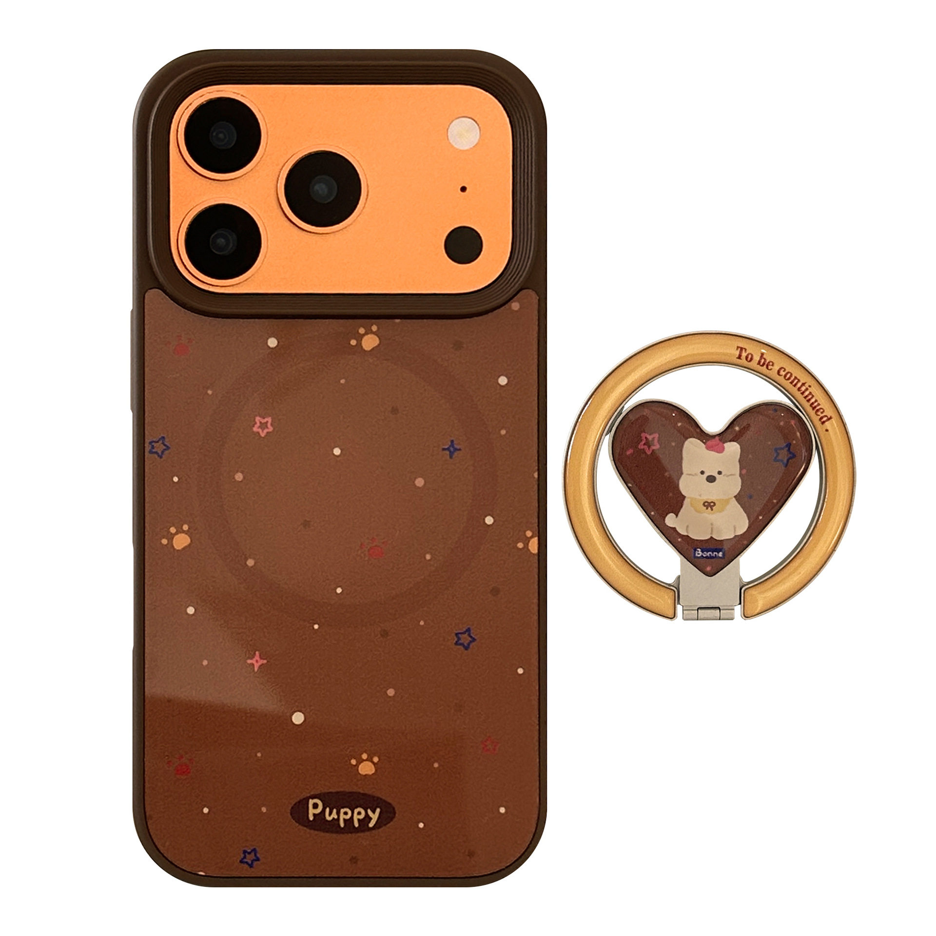 爱心狗磁吸圈【可拆卸支架】适用苹果17女款手机壳带支架16promax新款15pro高级感2026透明iphone13女生14