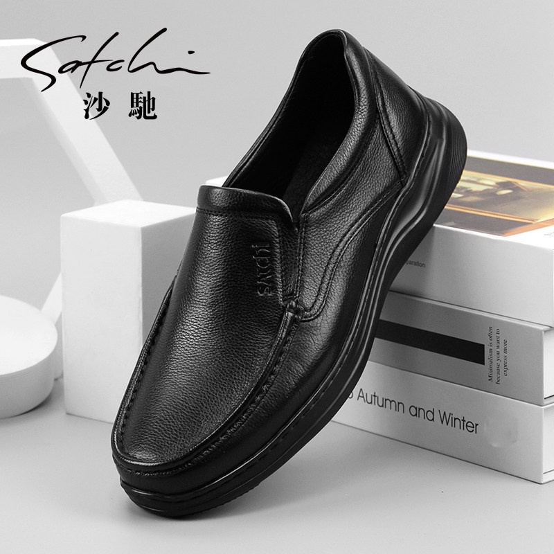 沙驰皮鞋男鞋商务休闲鞋男士皮鞋软面轻便舒适透气软皮软底驾车鞋