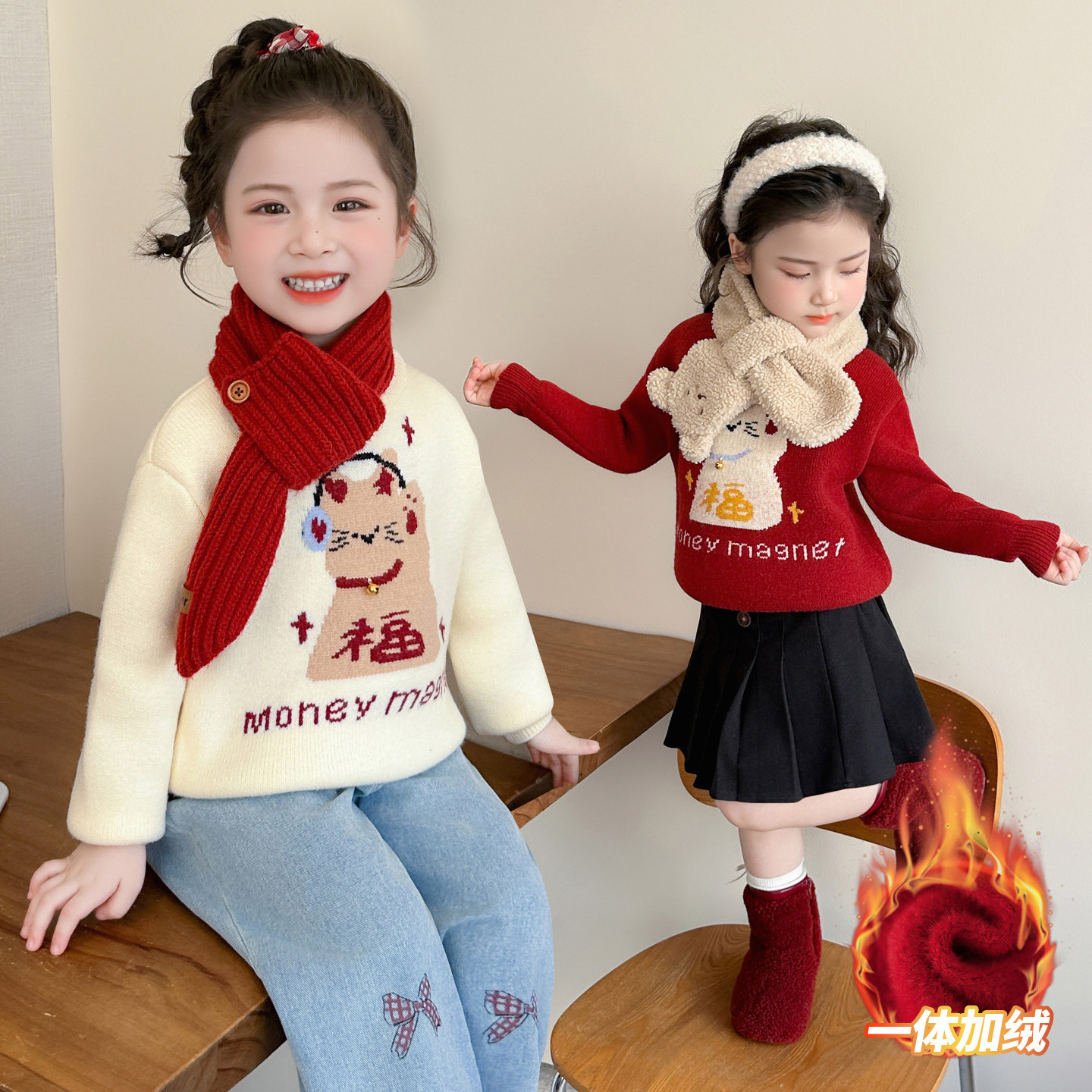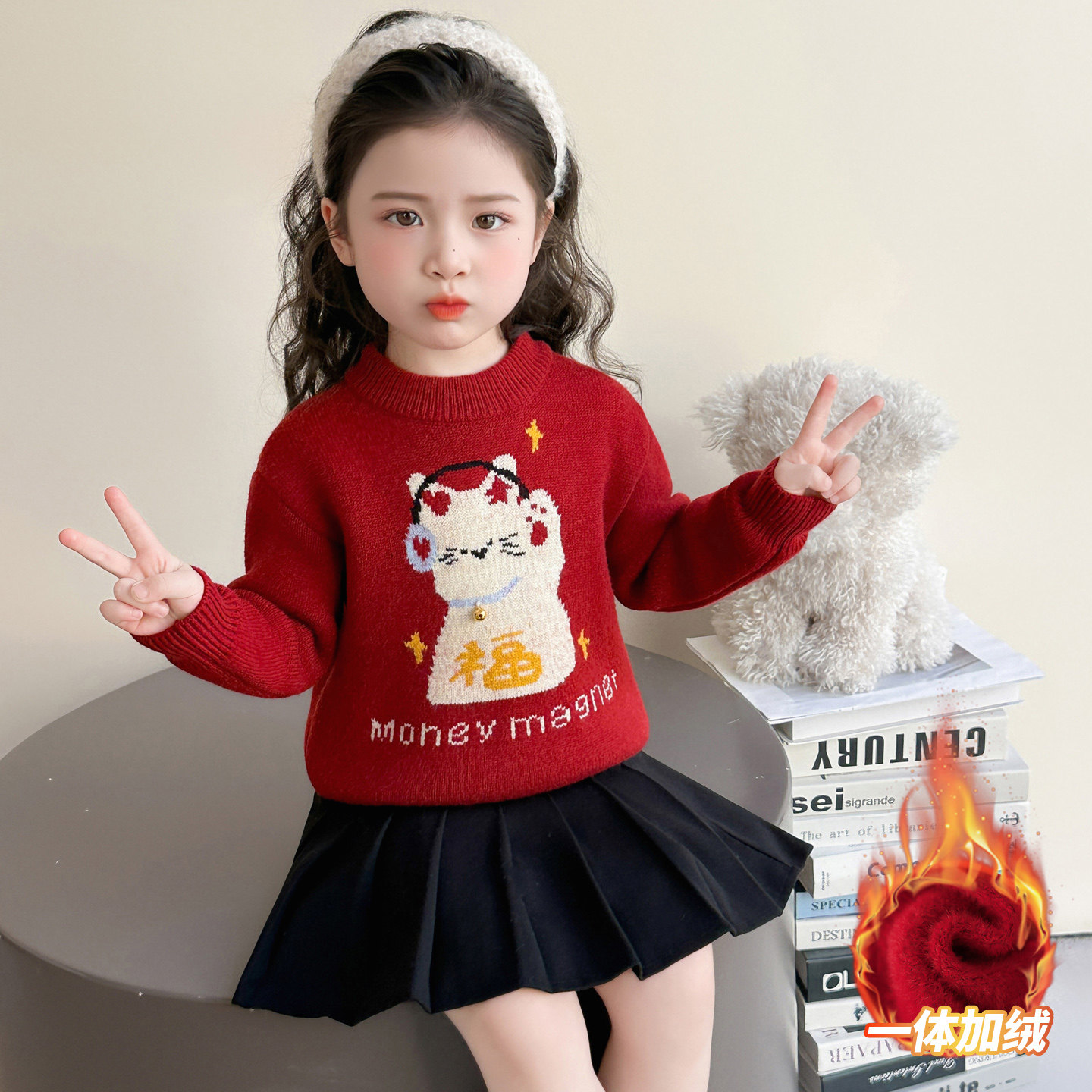 女童毛衣2025冬装新款女宝加厚宝宝冬季女款毛线衣儿童上衣内搭