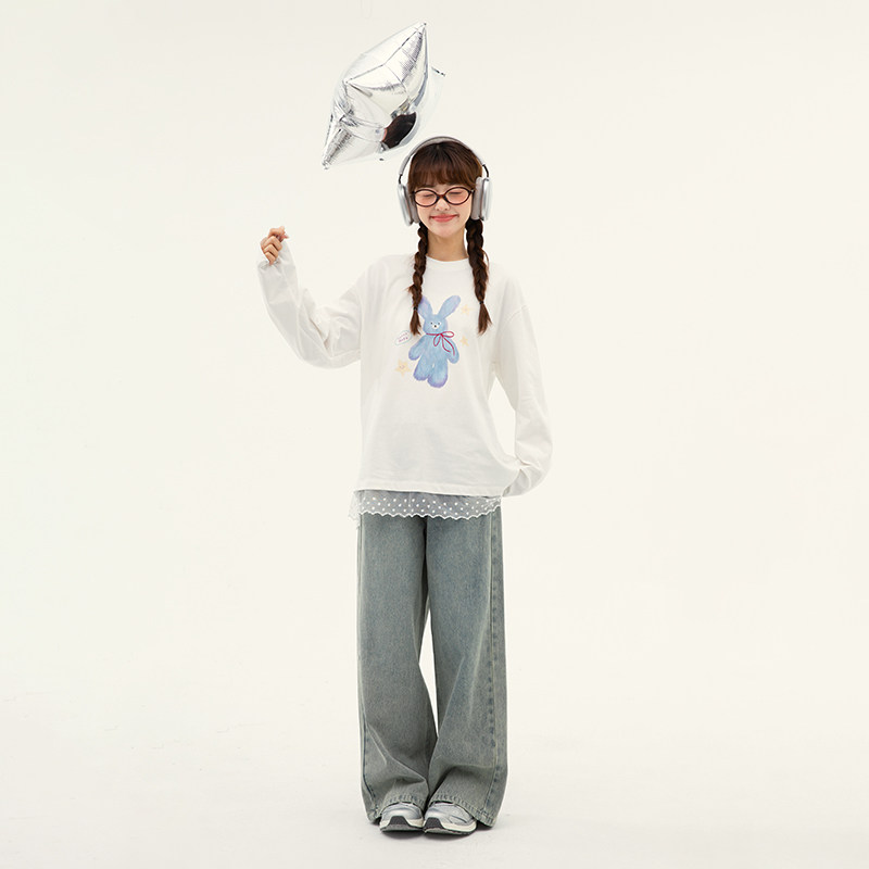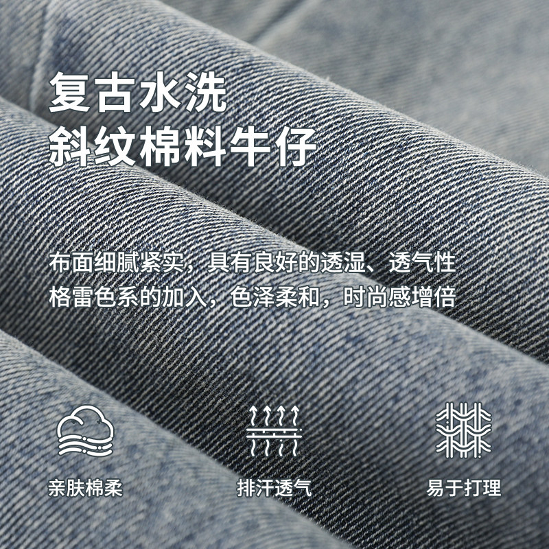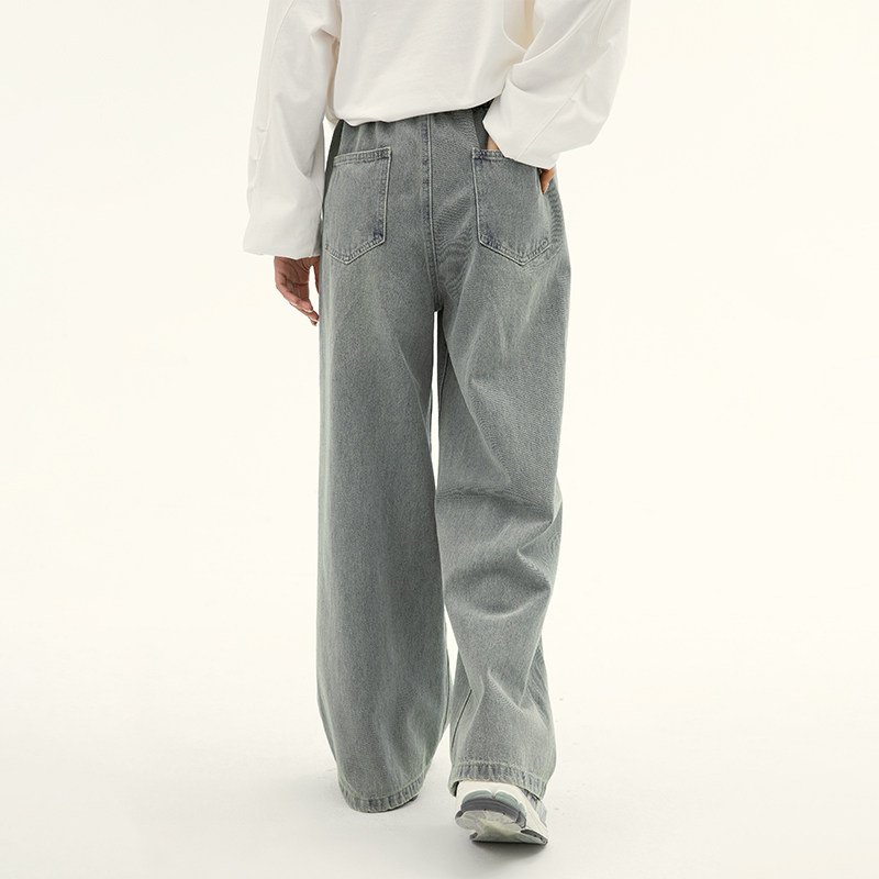 诺诺公主S1N 初中生浅色牛仔裤女春季青少年休闲直筒显瘦阔腿裤子