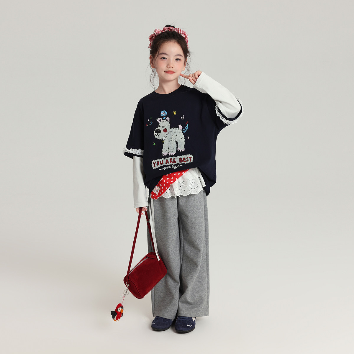 布丁哈鲁童装秋装女童上衣2026春秋新款儿童卡通印花假两件T恤