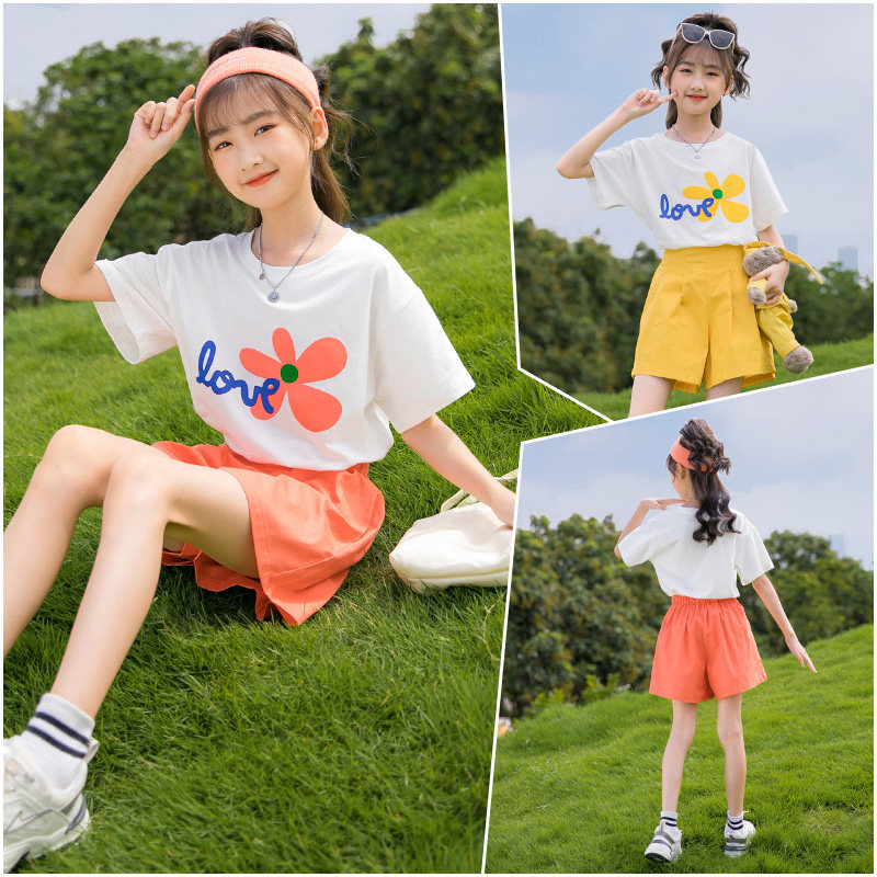 女童夏装套装2026新款洋气儿童装短袖夏季女孩休闲运动短裤两件套