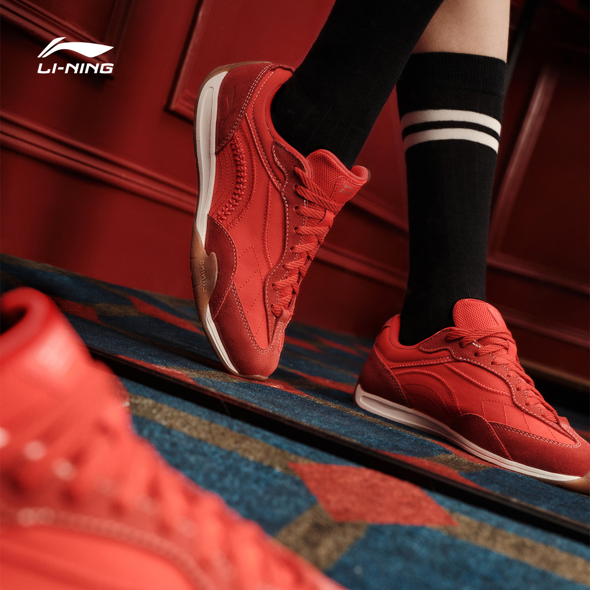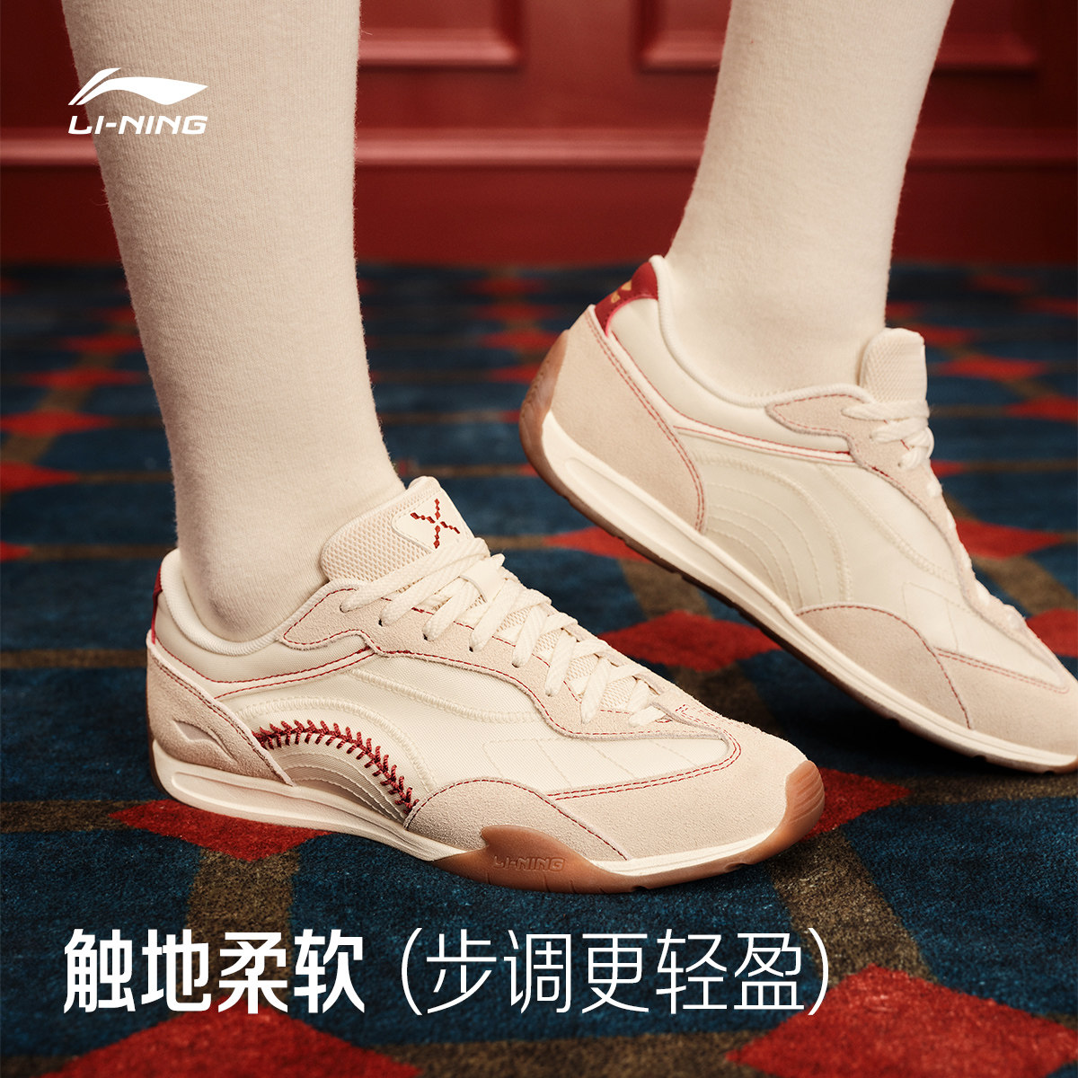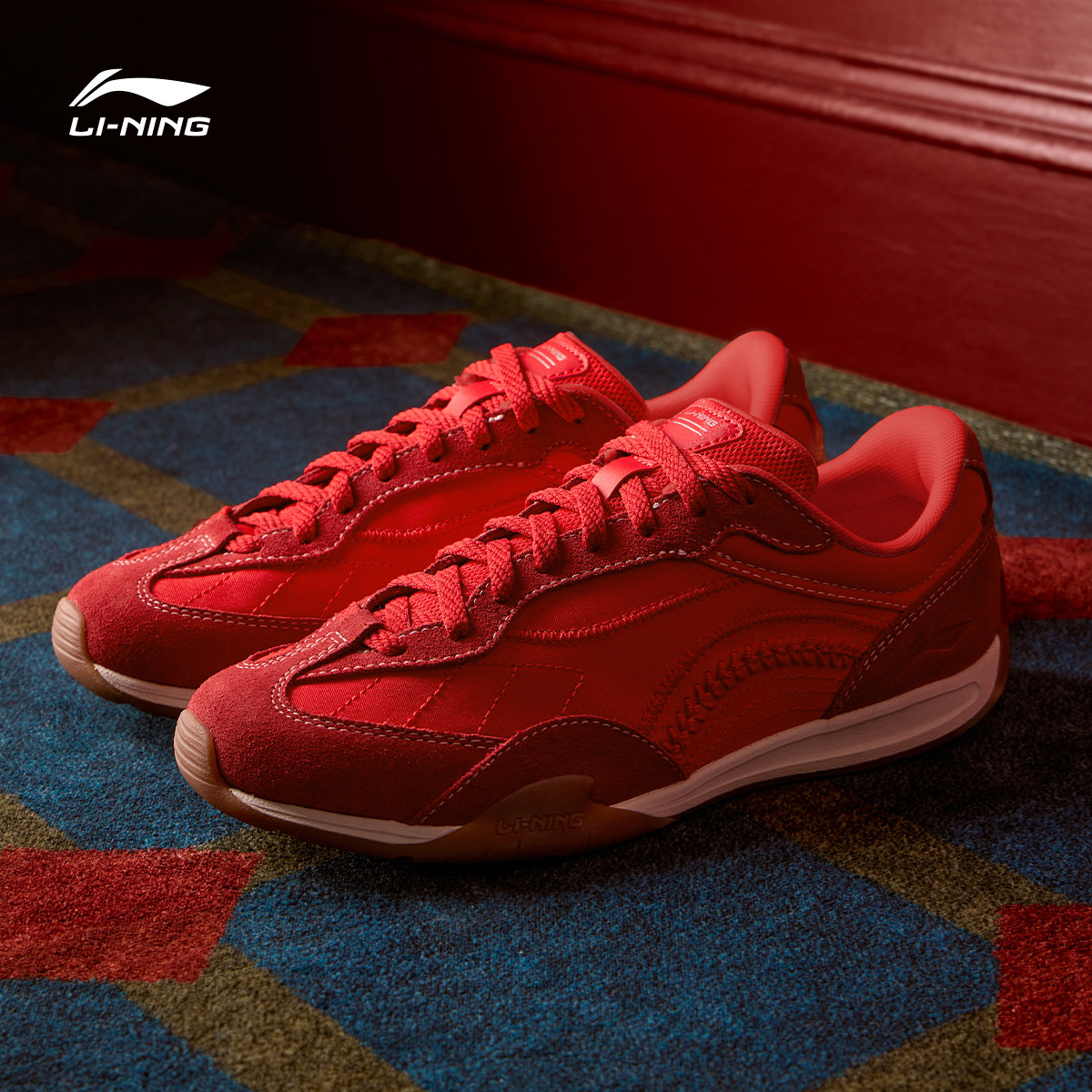 李宁菲林拳击BOXING丨休闲鞋女鞋2026夏季新款红色薄底运动鞋子