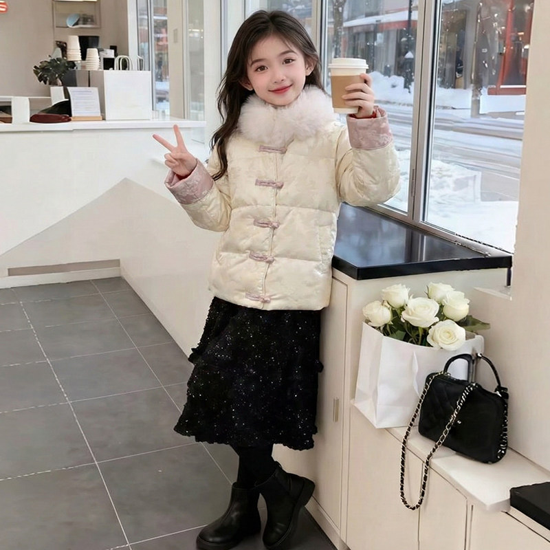女童羽绒服冬季2026新款洋气儿童时髦国风中式过年服女孩冬装外套