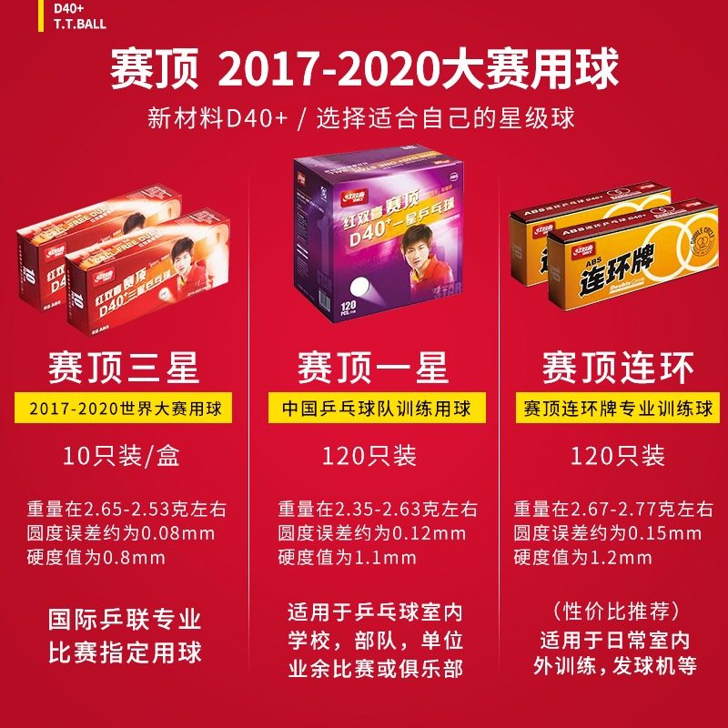 红双喜乒乓球三星120只装一星练习训练球耐打比赛专用乒乓球D40+