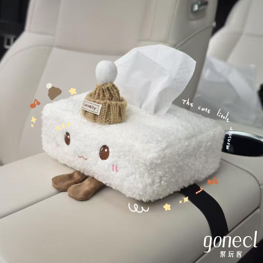 车载纸巾盒汽车用扶手箱抽纸盒车内装饰挂式创意可爱卡通毛绒纸抽