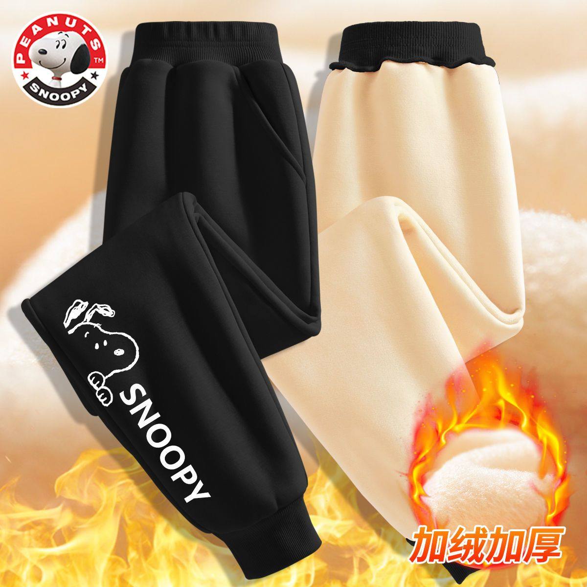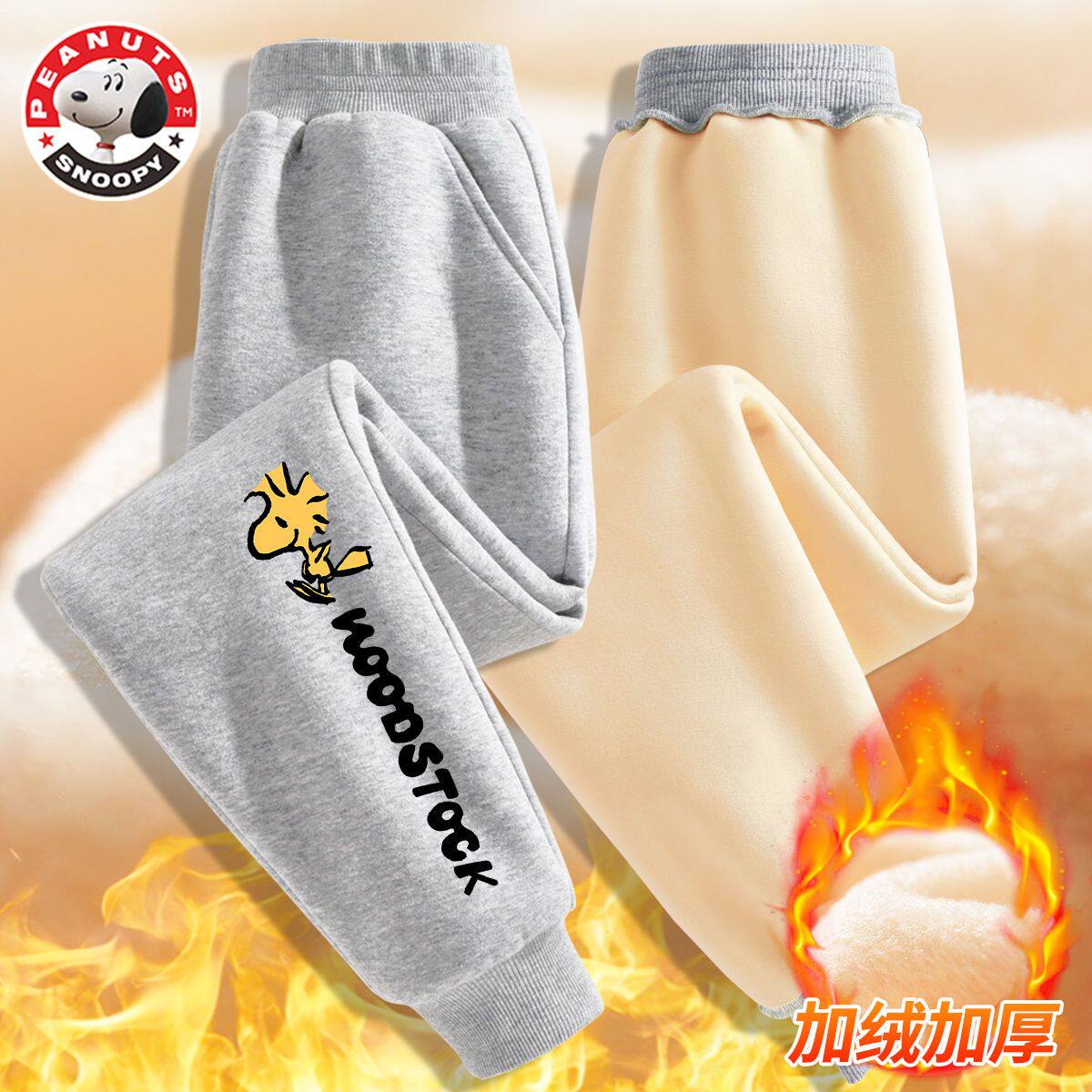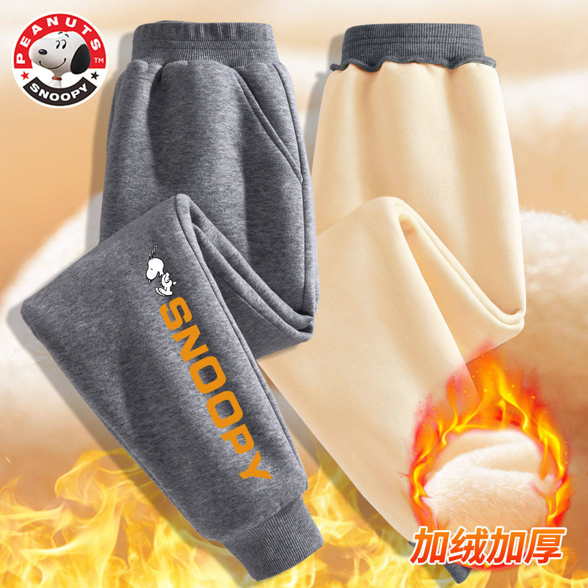 史努比男童一体绒裤子帅气2026新款儿童加绒加厚洋气冬装卫裤宽松
