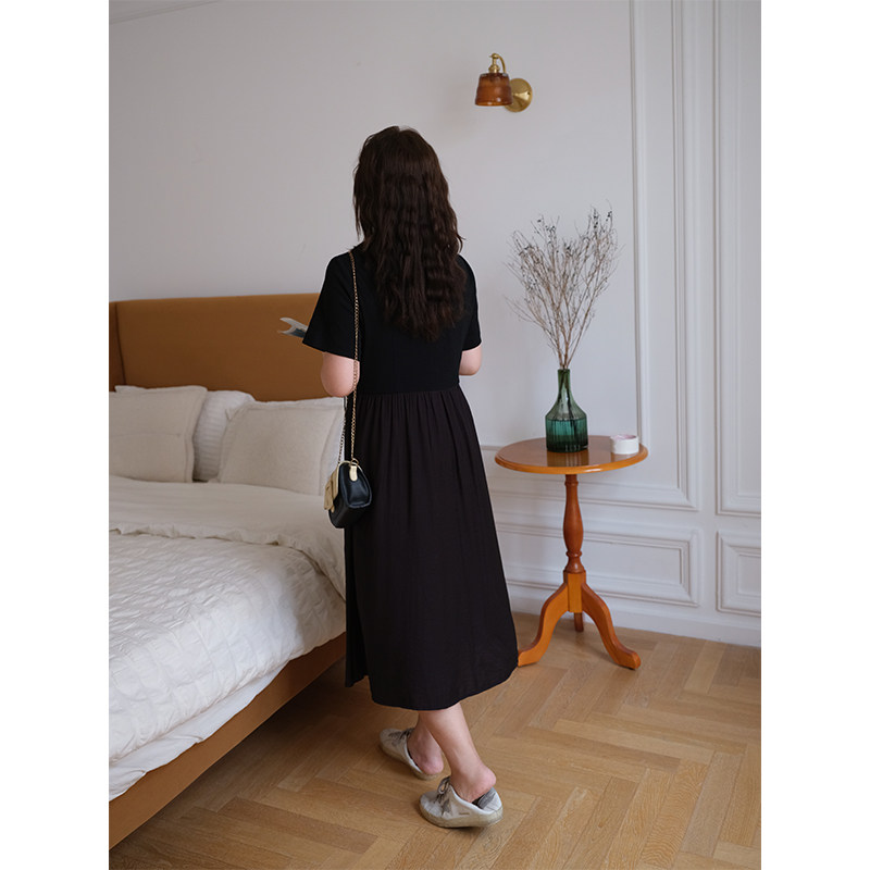 311线报网描述:赫本风法式方领气质收腰显瘦遮肚通勤连衣裙